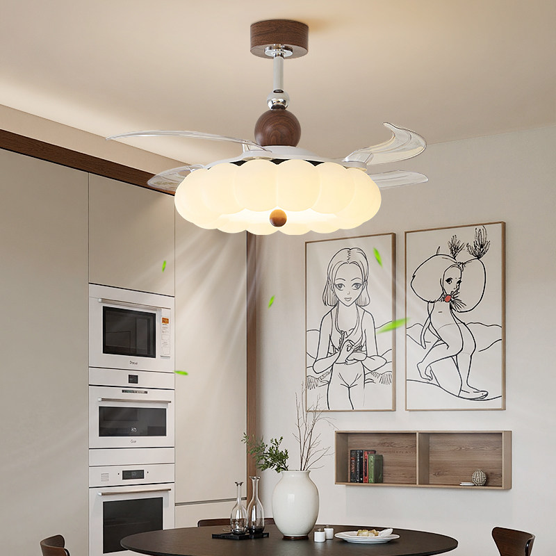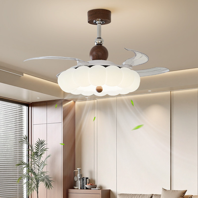 帕莎 风扇灯 法式奶油风2026新款云朵隐形静音中古客厅餐厅吊扇灯