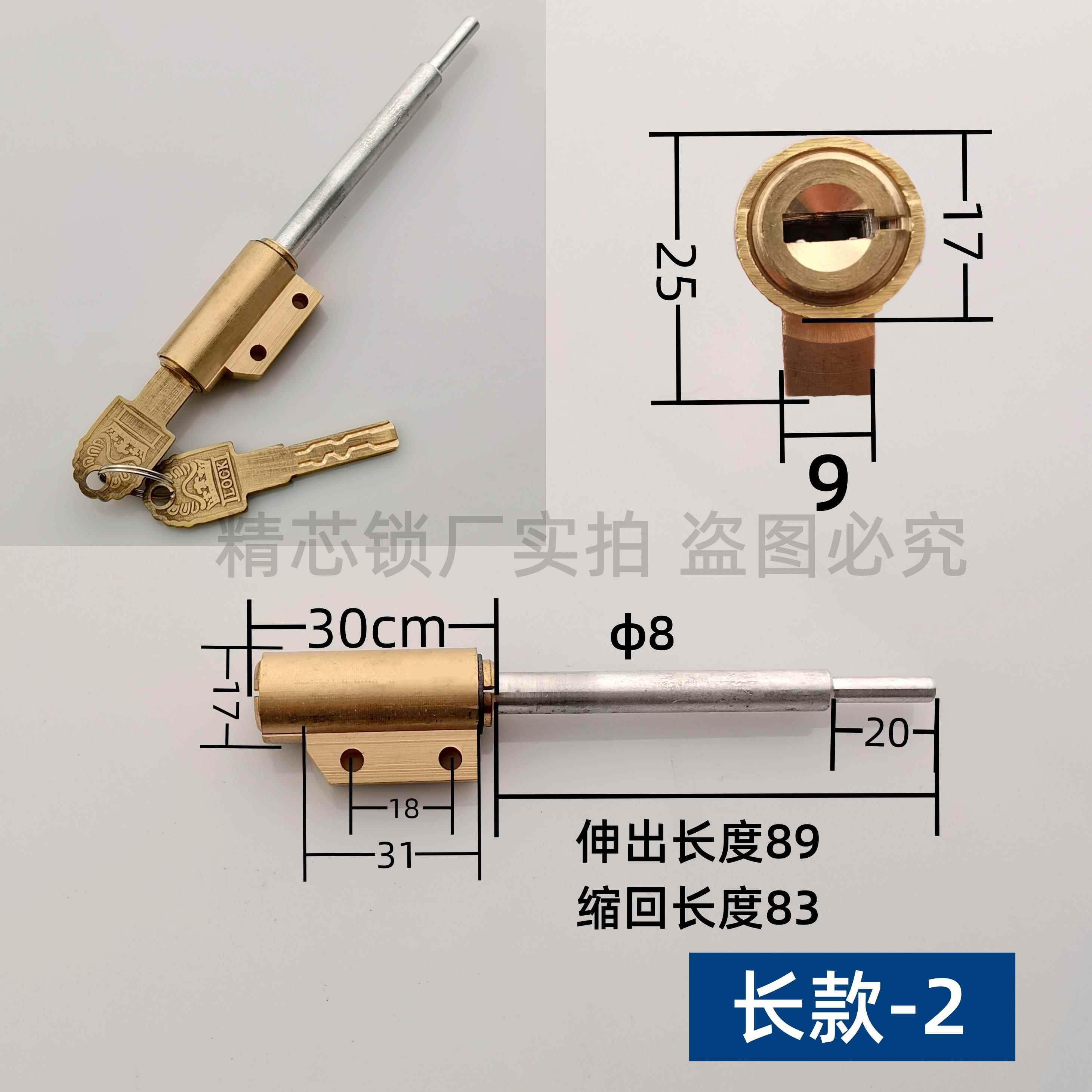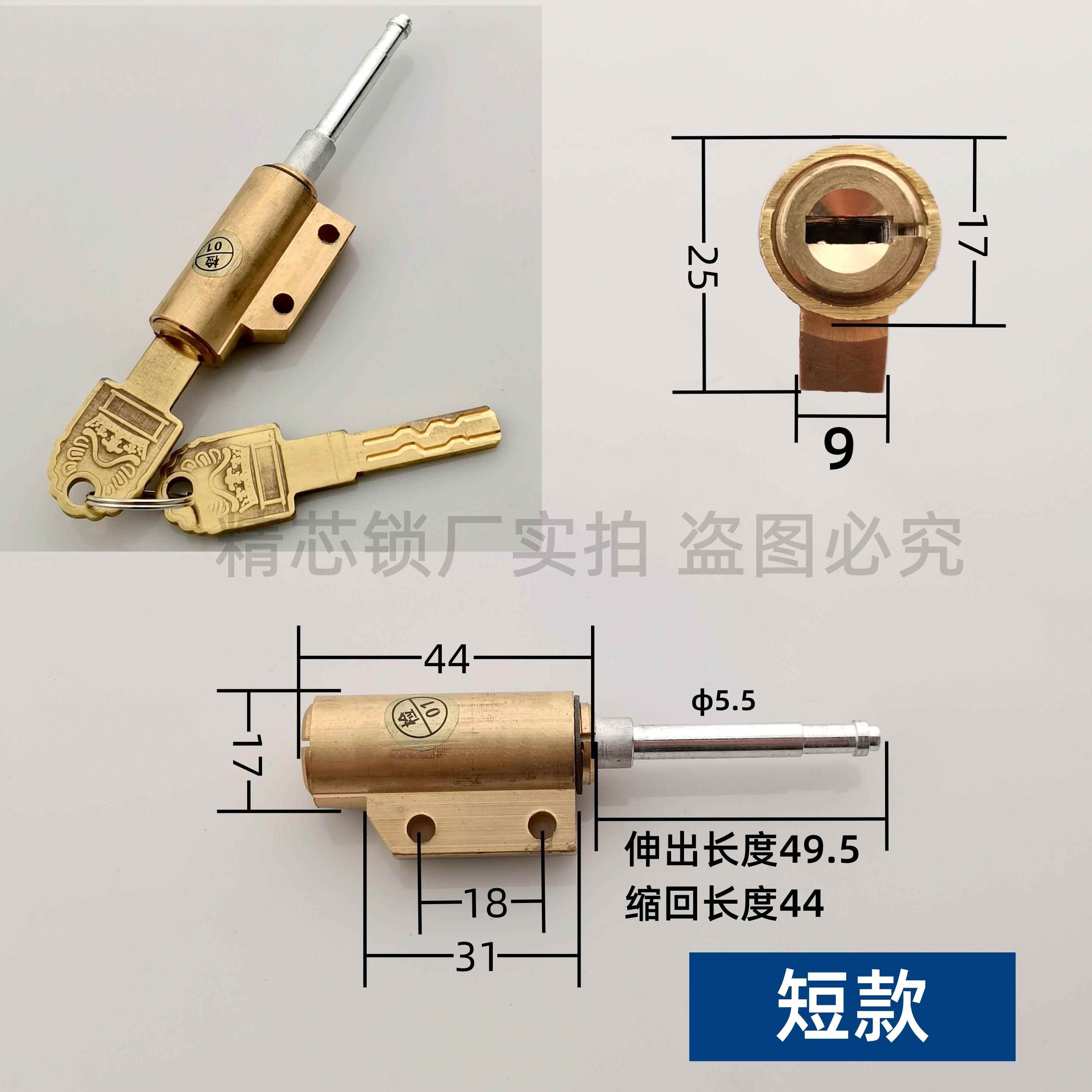 指纹锁伸缩杆备用锁芯下插芯假插芯双孔固定应急全铜C级防盗锁芯