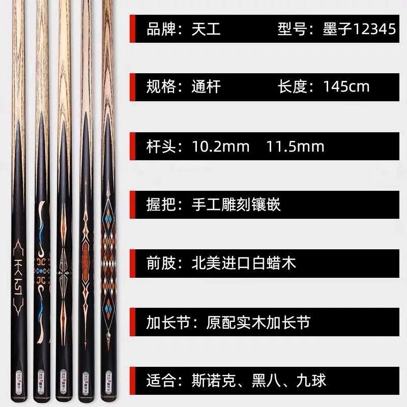 天工台球杆墨子12345一二三四五中式黑八斯诺克专用手工杆带赠品