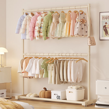 儿童晾衣架落地家用卧室内晒挂架子双杆式阳台置物架简易衣帽架子