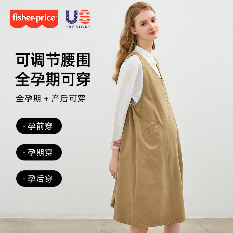 美国费雪孕妇秋装背带连衣裙2025新款小个子裙子秋季两件套装冬款