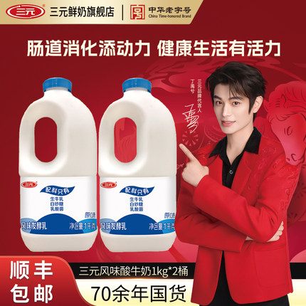 三元风味酸牛奶1000g*2桶风味发酵乳生牛乳水果捞炒酸奶低温酸奶