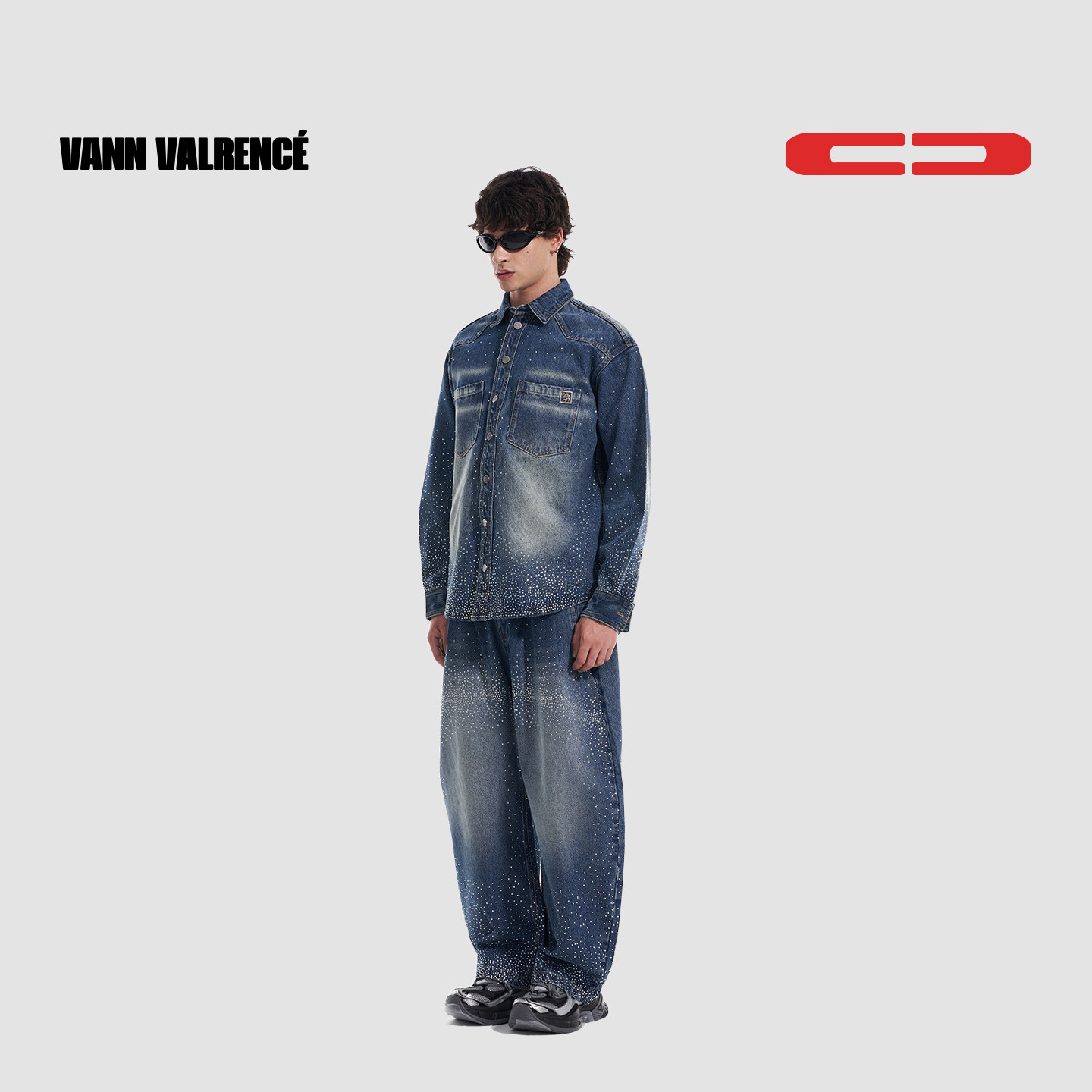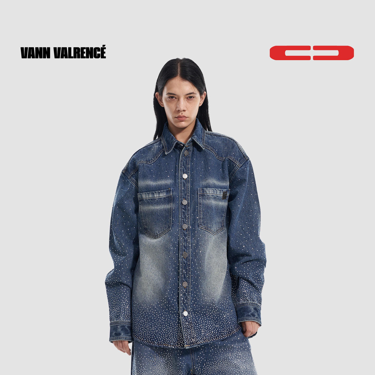 【木子洋同款】VANN VALRENCE烫钻宽松水洗复古牛仔衬衫夹克外套