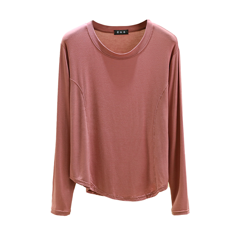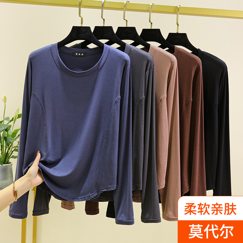 莫代尔圆领长袖T恤大码内搭纯色上衣女春秋薄款休闲百搭显瘦打底
