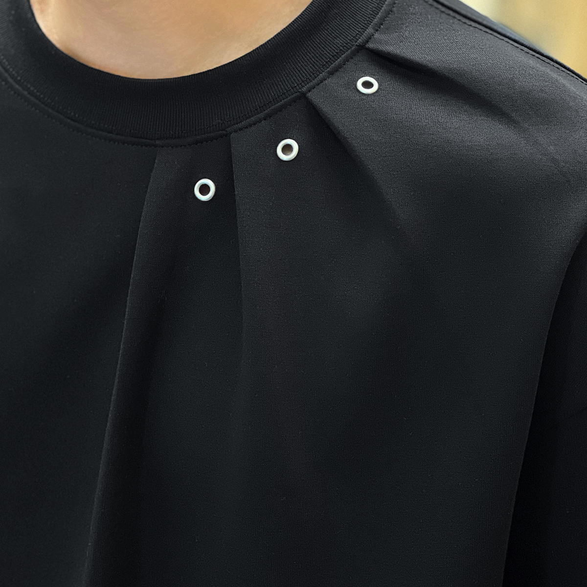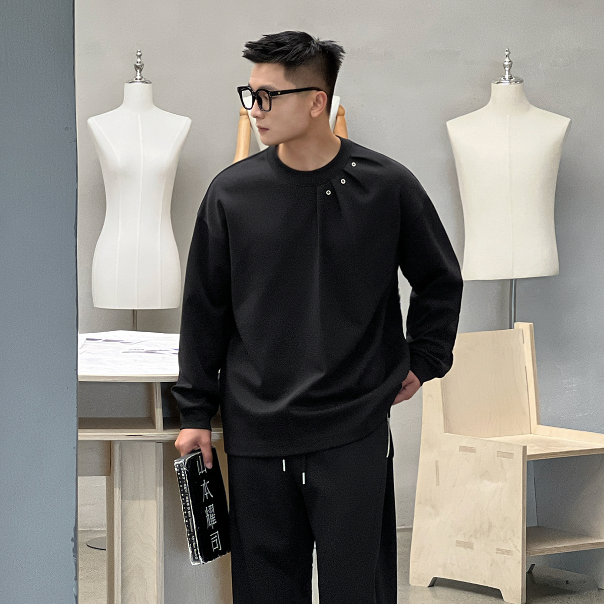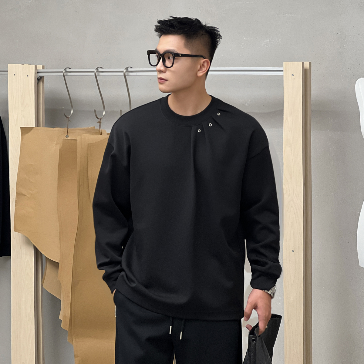 二十二号穿搭小众压褶设计款秋冬长袖t恤男高级感圆领内搭打底衫