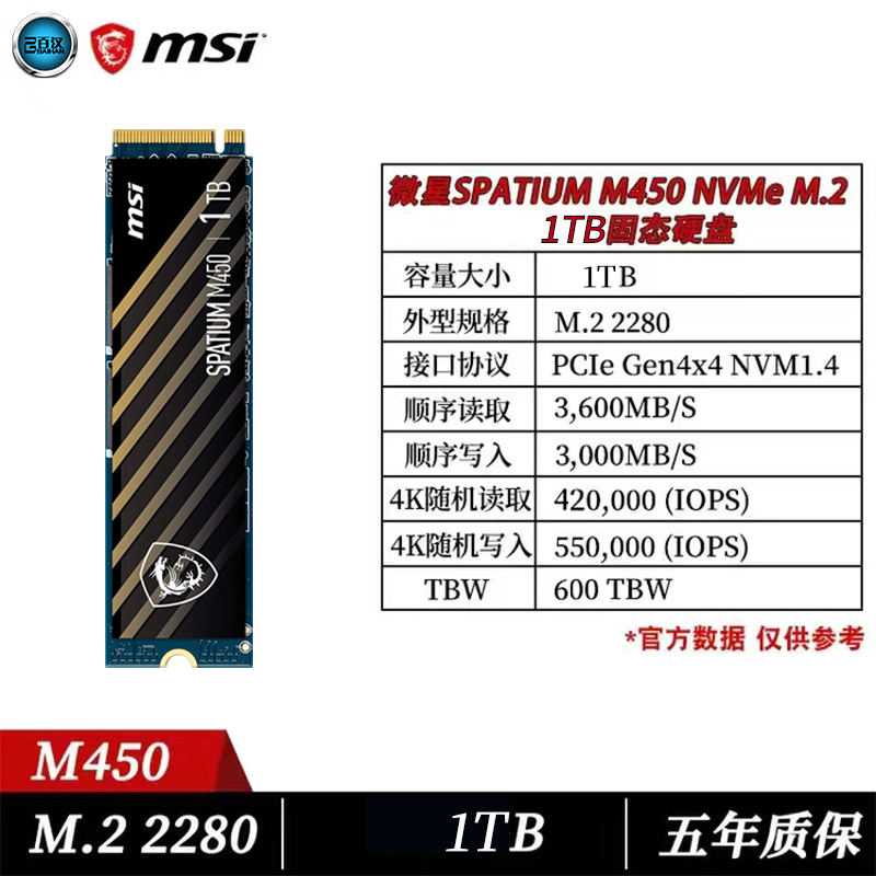 微星固态硬盘 M450/470pro500G/1T台式机笔记本存储M.2 pci-e 4.0