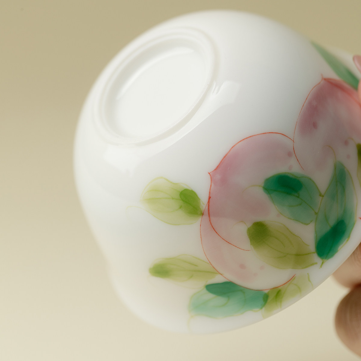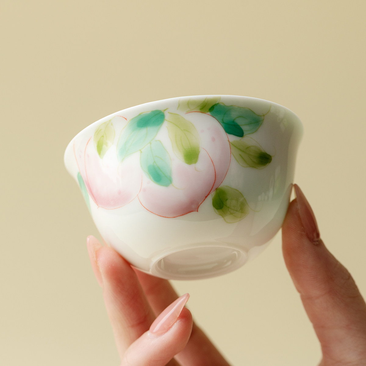 里作 创意粉彩手绘寿桃主人杯高颜值精致薄胎品茗杯功夫茶具茶杯