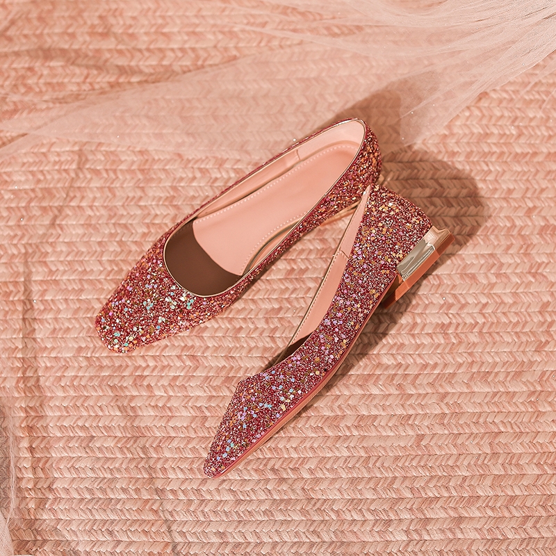 小众方头平底高级感水晶婚鞋女