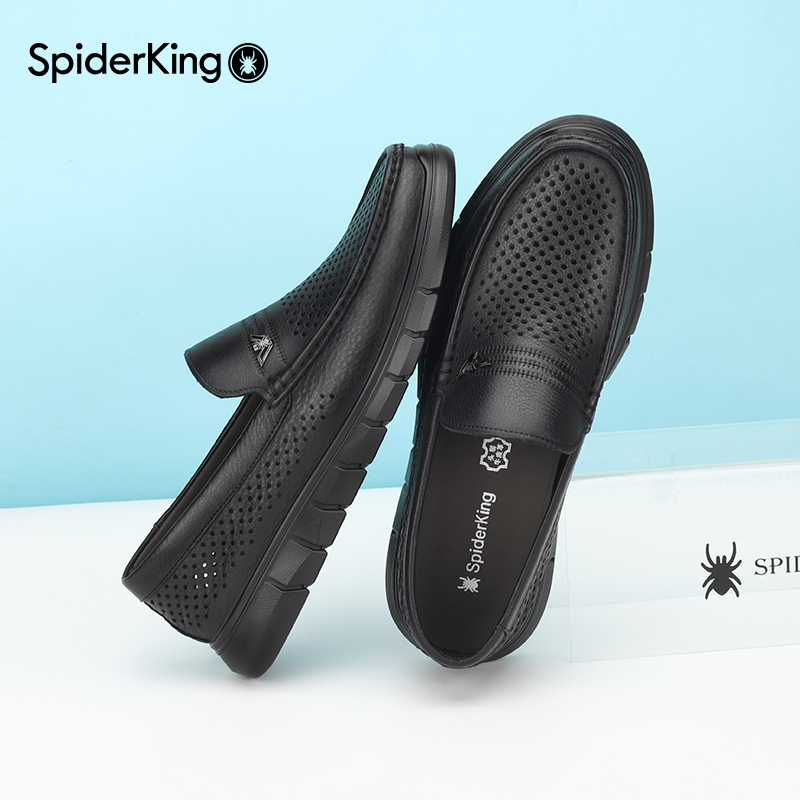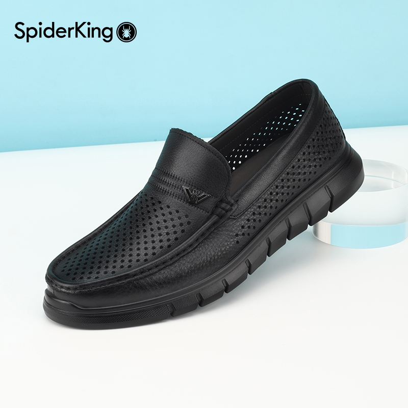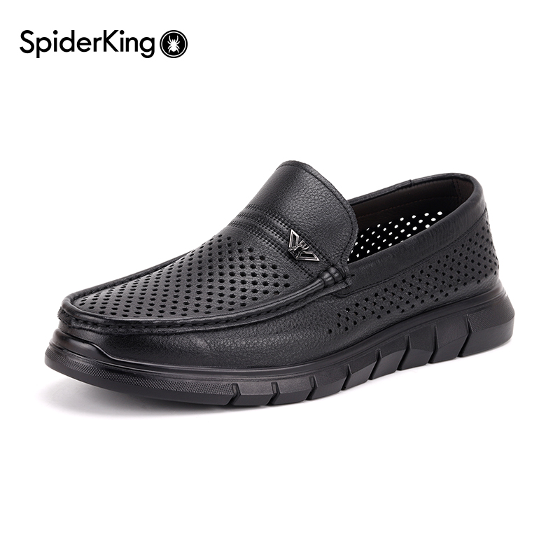 蜘蛛王皮鞋男鞋镂空凉鞋2024夏季新款真皮软底防滑中年爸爸休闲鞋