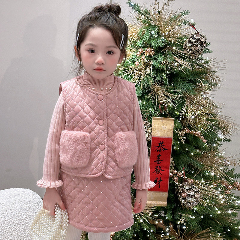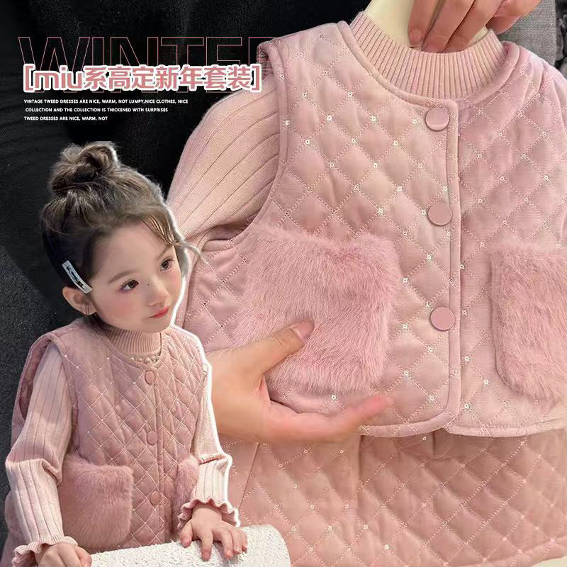 女童洋气新年套装2025新款冬装周岁礼服公主女宝宝小香风马甲套裙
