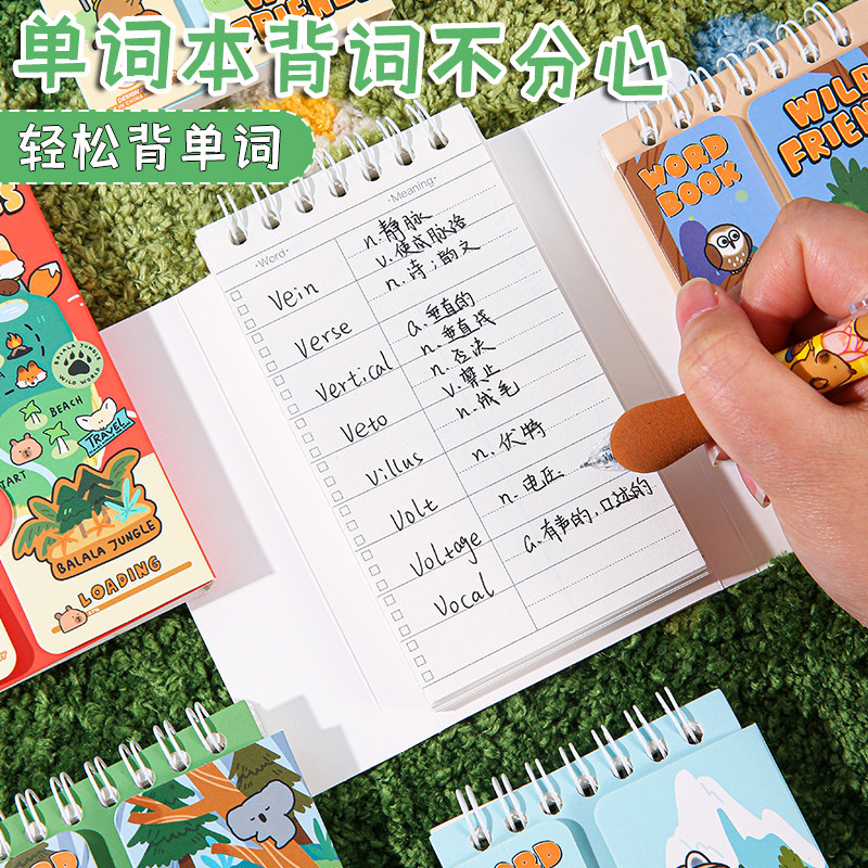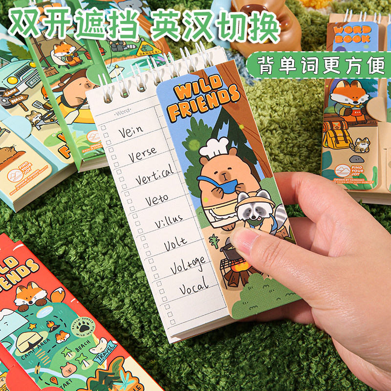 趣味卡皮森林探险队单词本可遮挡便携小型英语词汇积累本初高中生随身记四六级考研英语单词记忆本创意高颜值