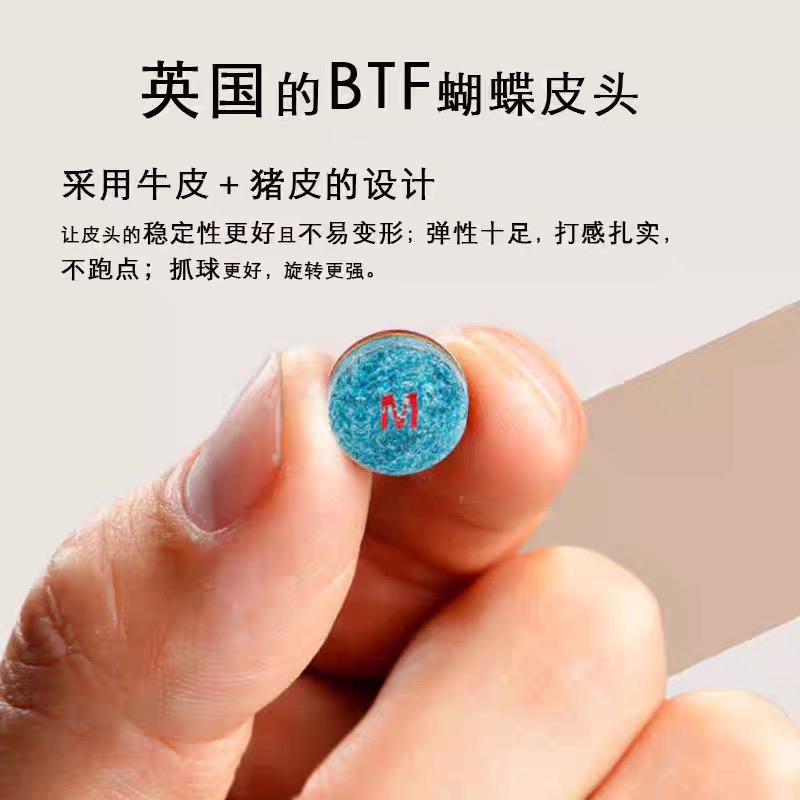 BTF蝴蝶皮头台球杆皮头高端小头杆台球桌球斯诺克彩虹皮头用品