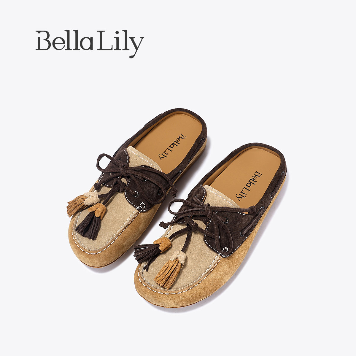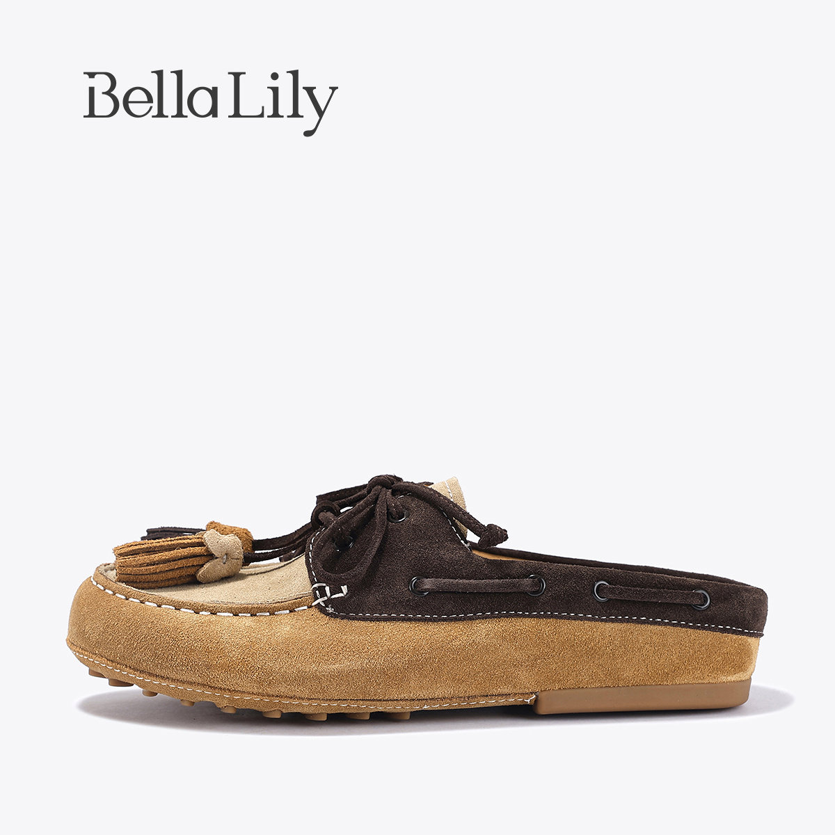 BellaLily2026春季新款设计感撞色穆勒拖外穿半包拖鞋百搭乐福鞋