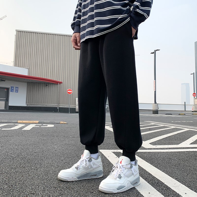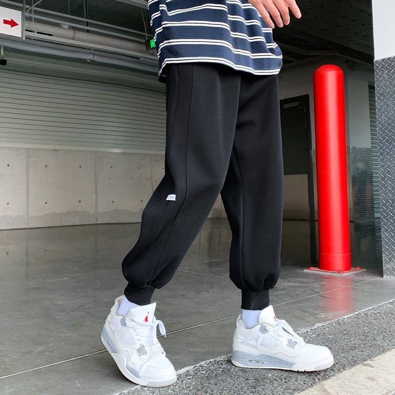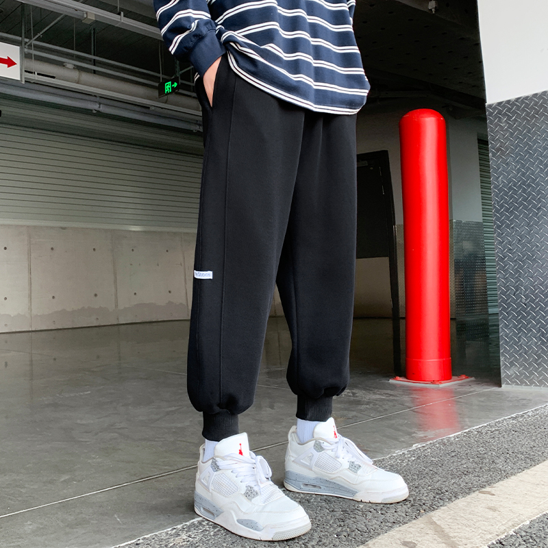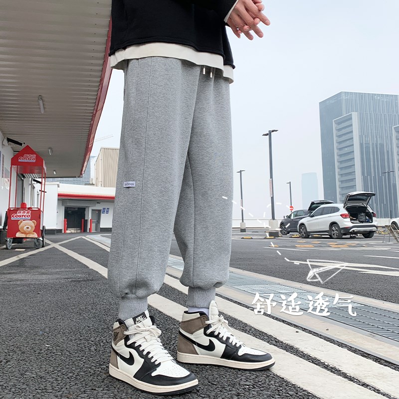 休闲裤子男款春秋新款宽松百搭运动裤长裤潮流拼接束脚裤黑色卫裤