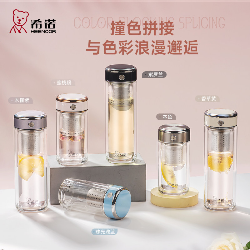 希诺双层抗菌玻璃杯女高颜值新款钛杯水杯男防烫可爱小巧泡茶杯子