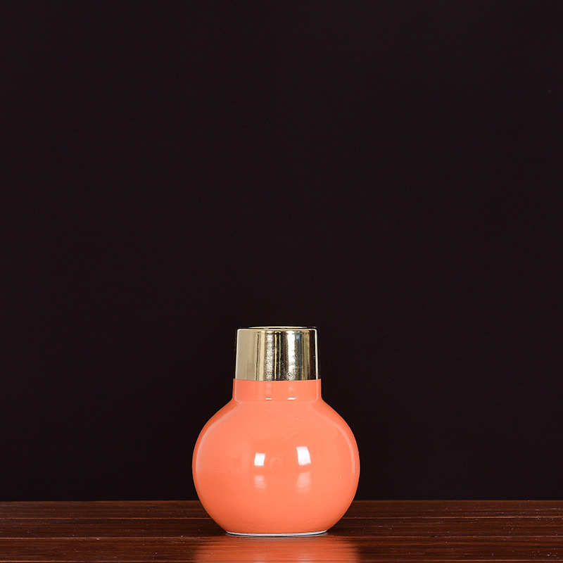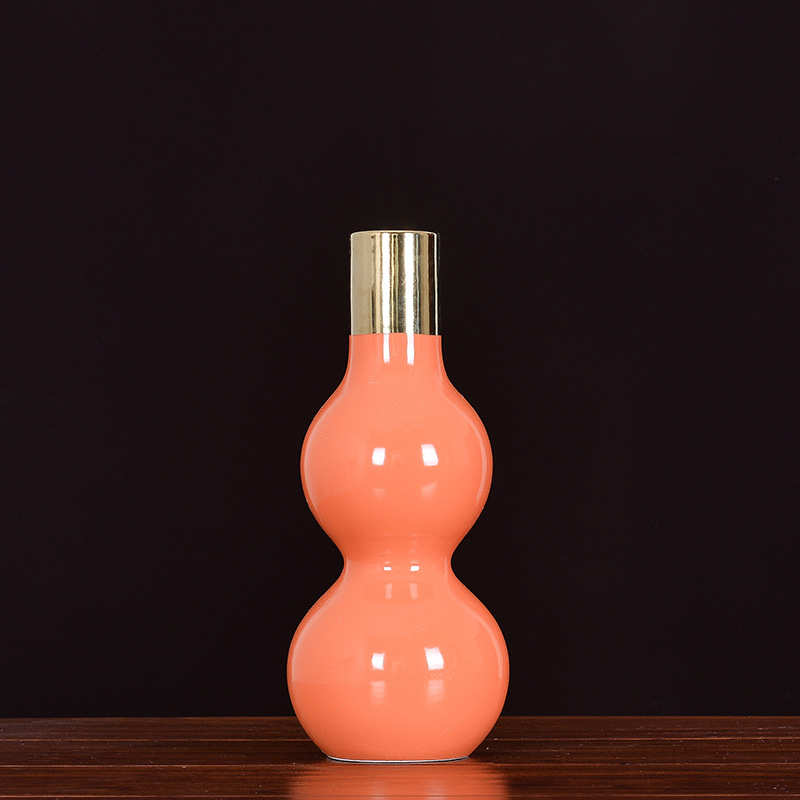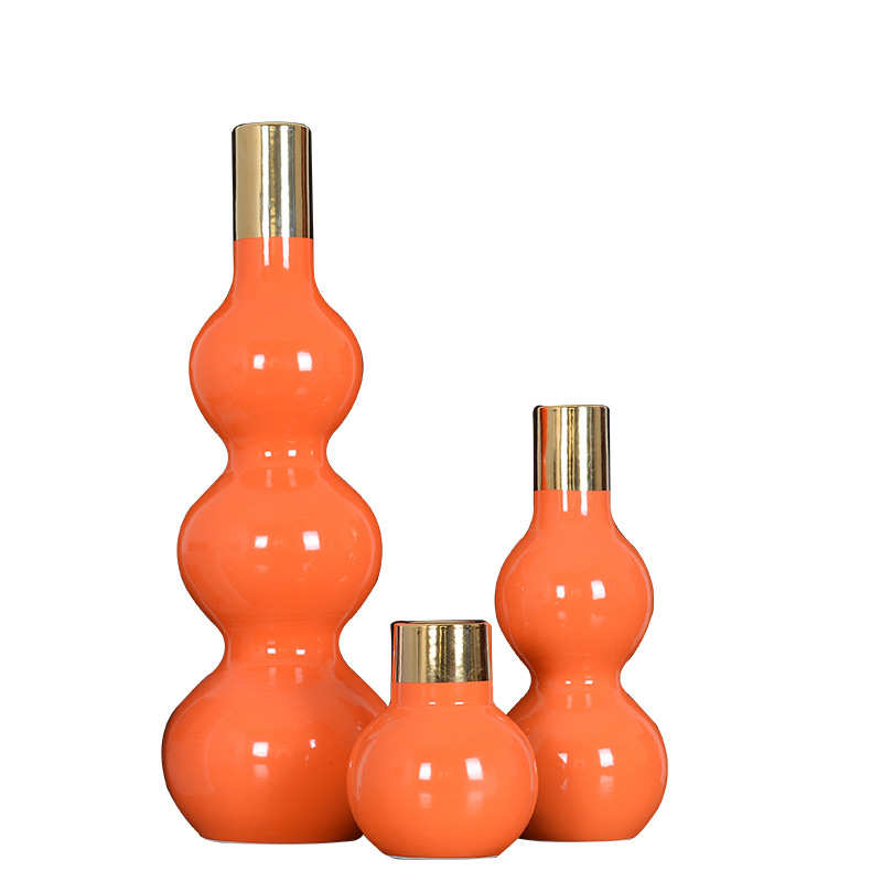桔色镀金葫芦三件套中式会所家居装饰品摆件陶瓷花瓶中式创意摆