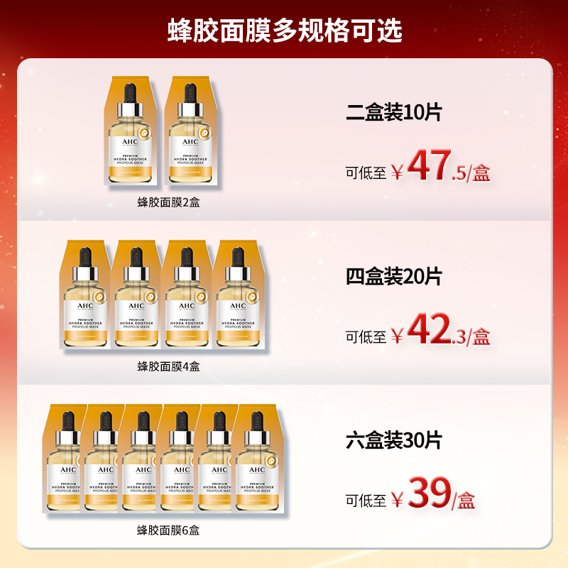 AHC官方旗舰店蜂胶舒润亮采面膜保湿水润深层补水舒缓护肤正品