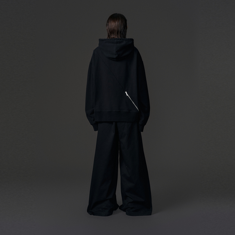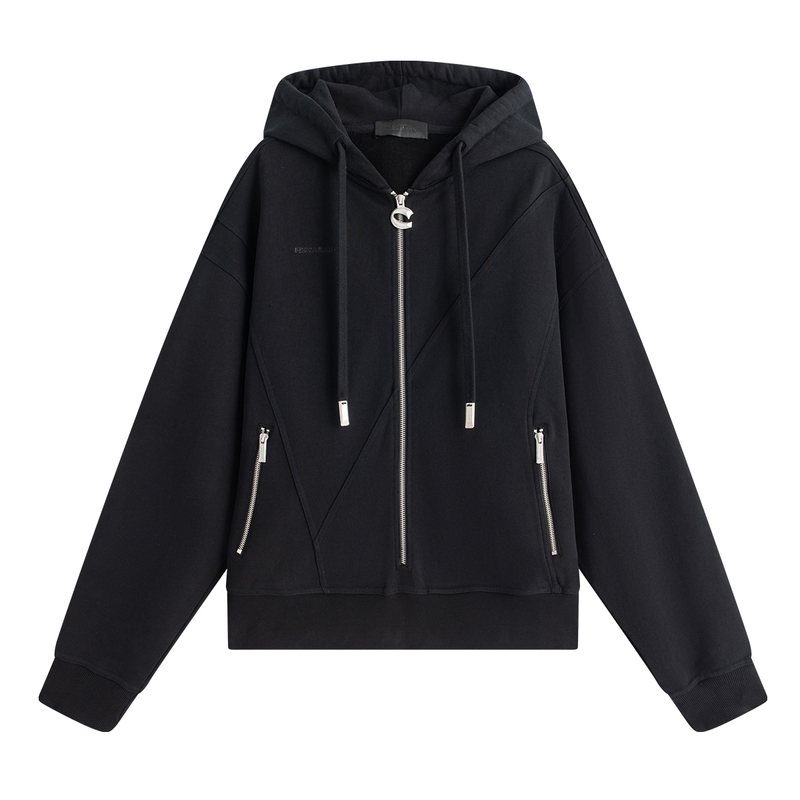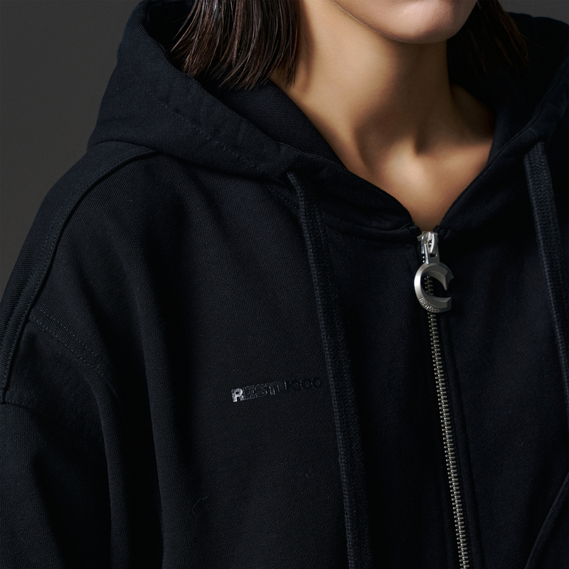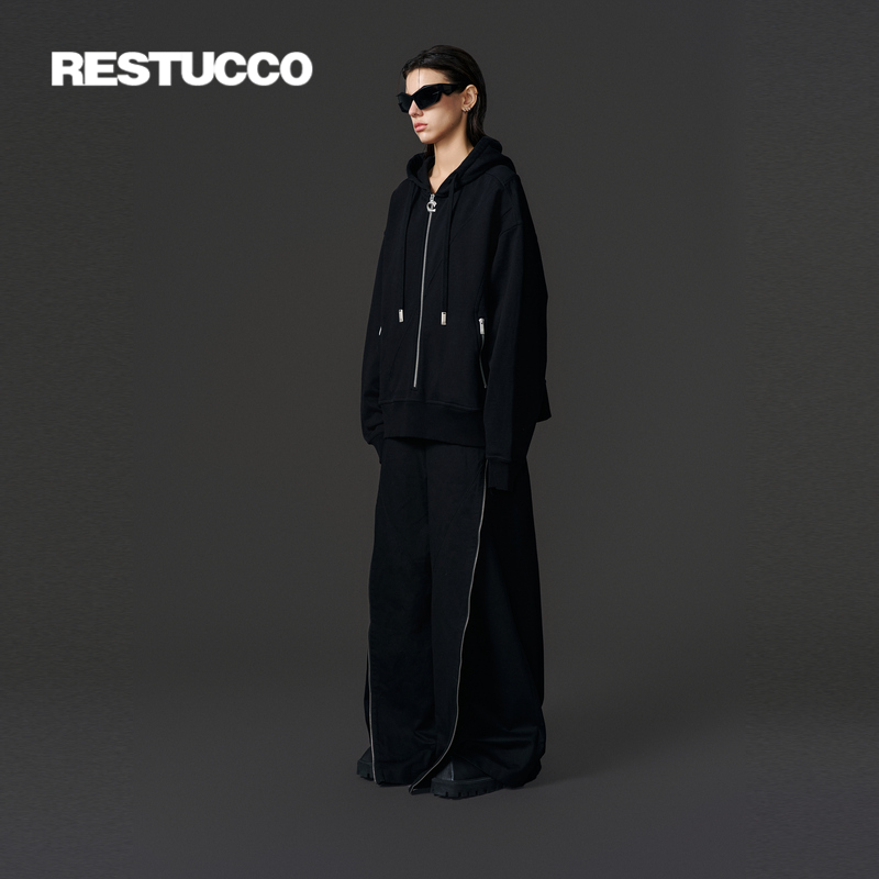 [设计师品牌] RESTUCCO 拉链拼接设计连帽开衫卫衣外套女黑色辣妹