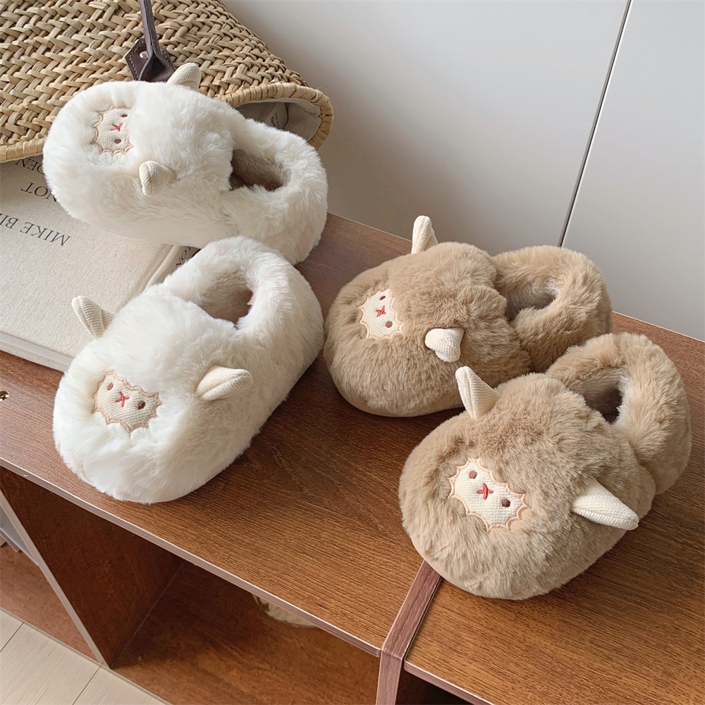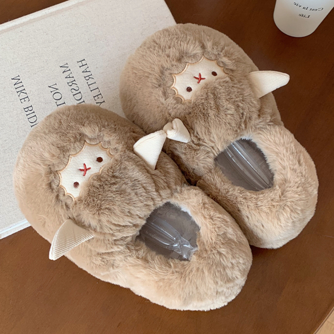 细细条 保暖包跟ins可爱小羊棉拖鞋女舒适居家冬季卡通亲子毛毛鞋