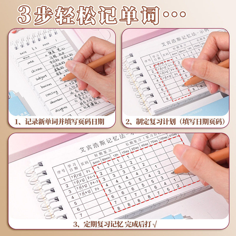 艾宾浩斯英语单字本记忆本随身可携式活页可遮挡小本子迷你口袋笔记本小学生默写记背单字四六级考研日语韩语