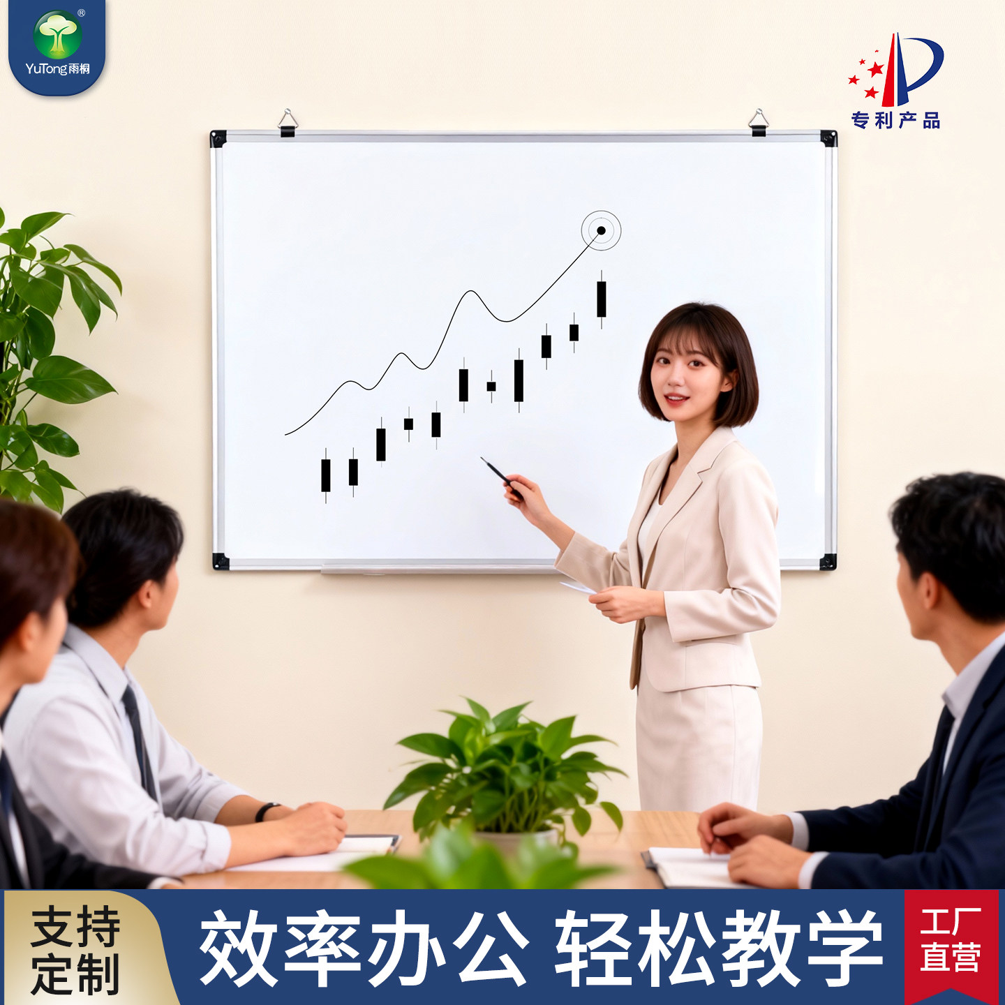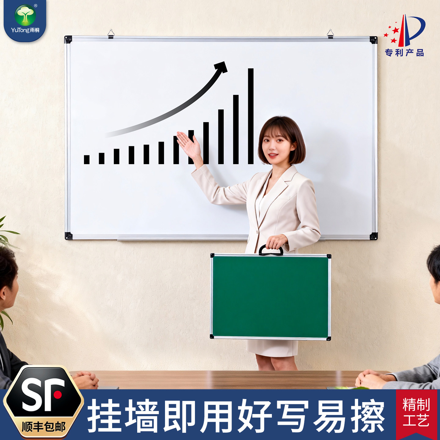 雨桐双面白板可擦写字板无毒家用留言板教师教学挂墙式磁性小黑板儿童涂鸦画板可移动手提绿板办公培训展示板
