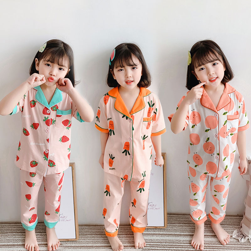 女童睡衣夏短袖长裤夏季儿童家居服小童纯棉女孩夏天宝宝套装薄款