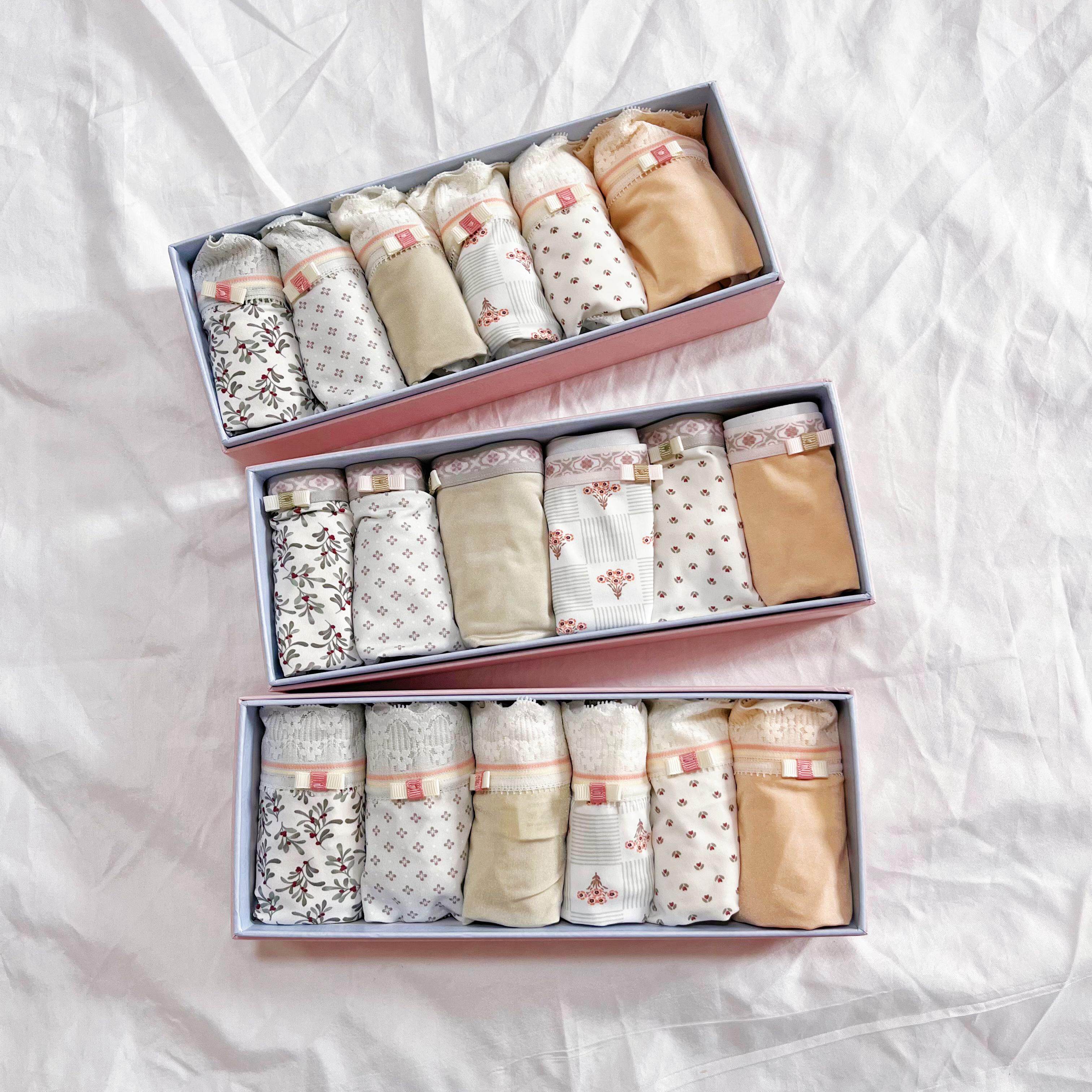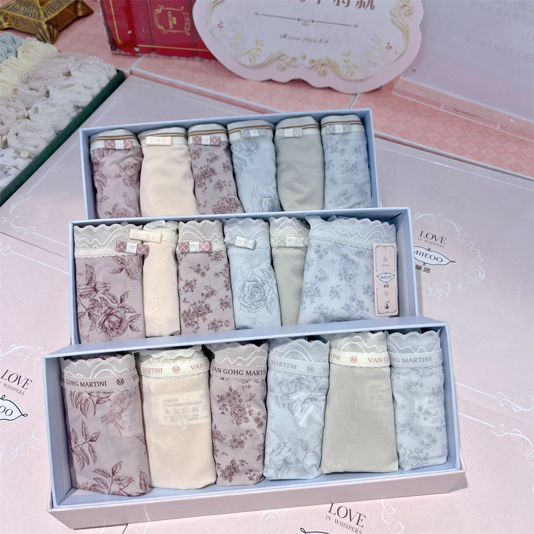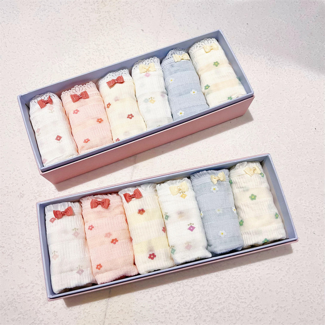 秘语新款六条装女士内裤中腰高开叉蕾丝花边透气抗菌平角裤多款式