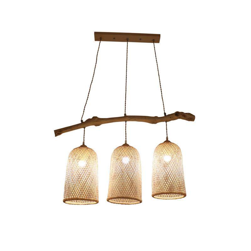 一件代发吊灯新中式禅意茶室灯创意个性三头餐厅树枝灯竹编吊灯