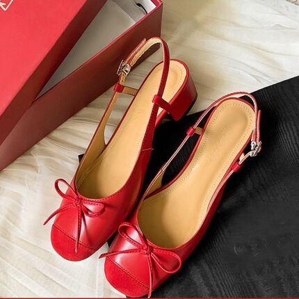 包头凉鞋2026春夏季新款蝴蝶结拼色中跟后空真皮百搭女法式单鞋