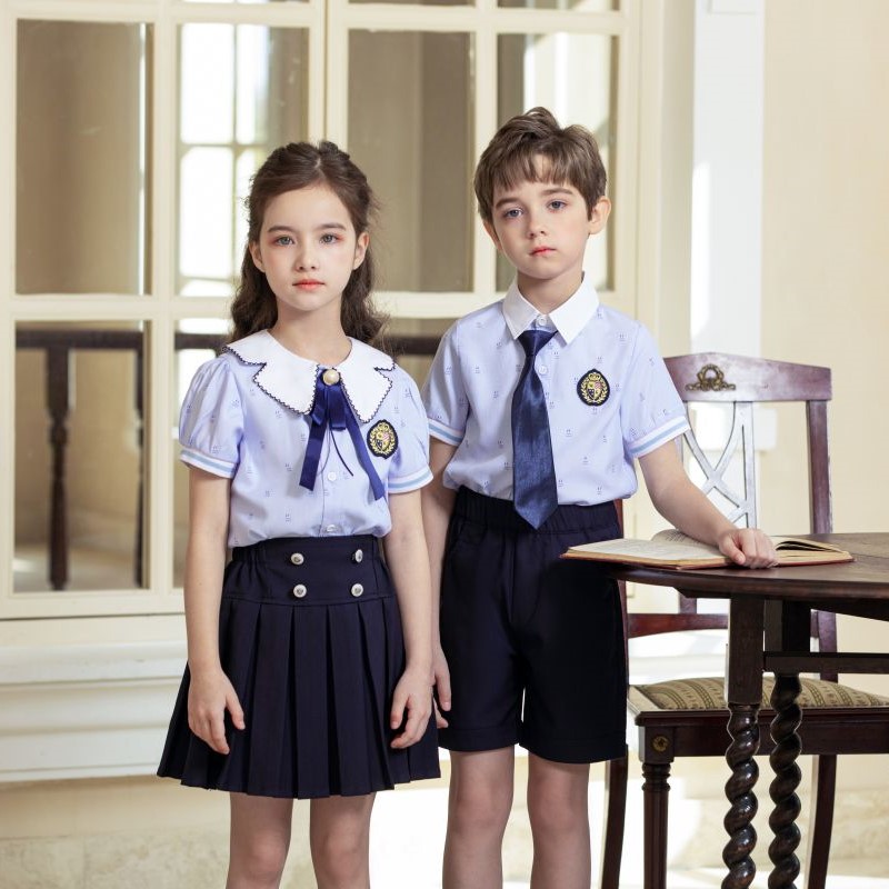 小学生校服夏季海军风白色衬衫纯棉短袖男女童园服毕业班班服裙子