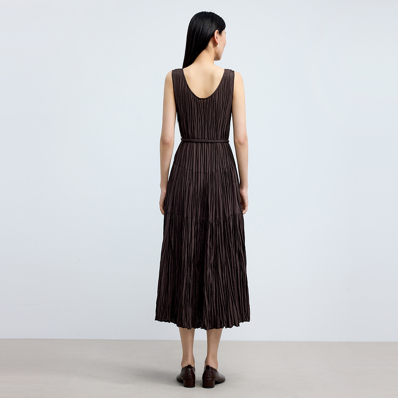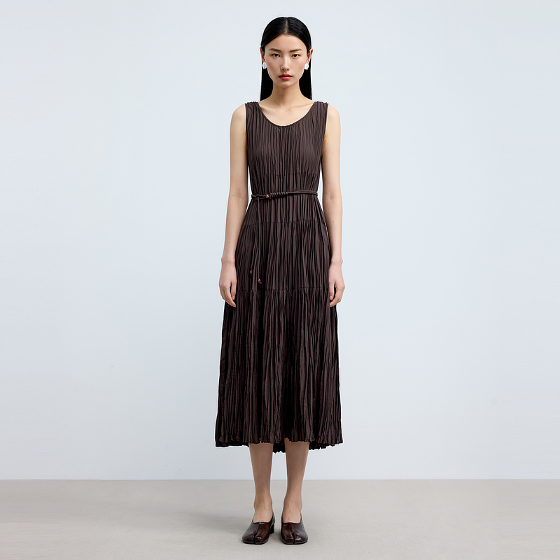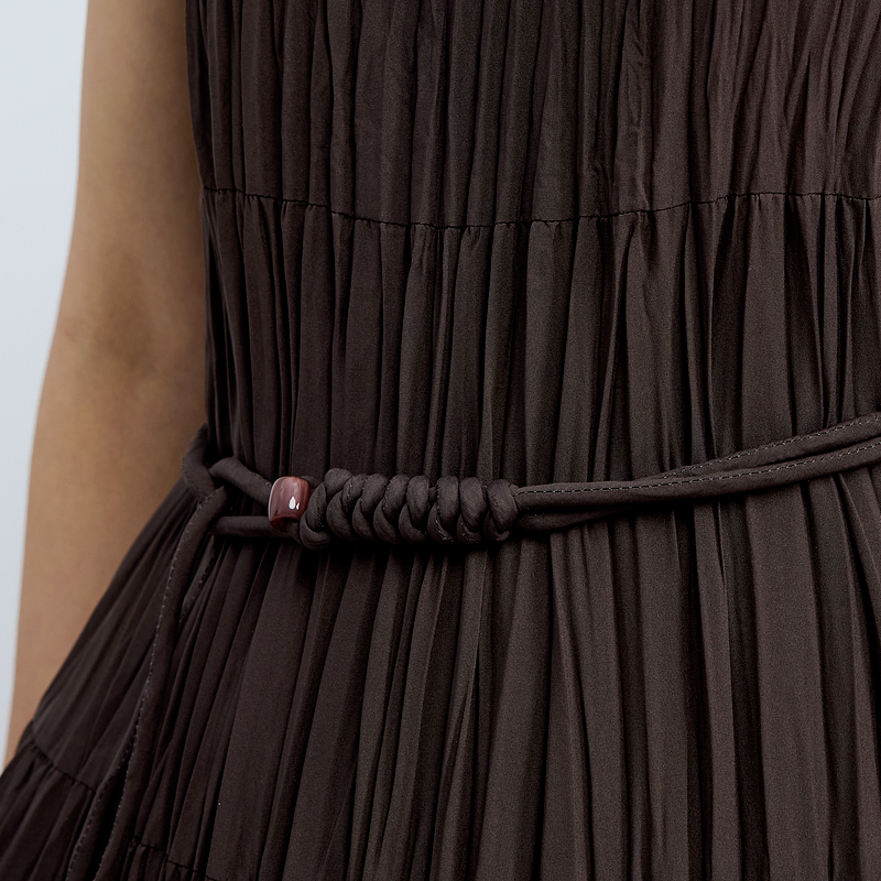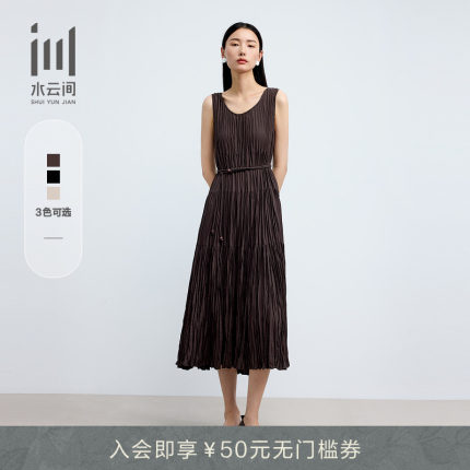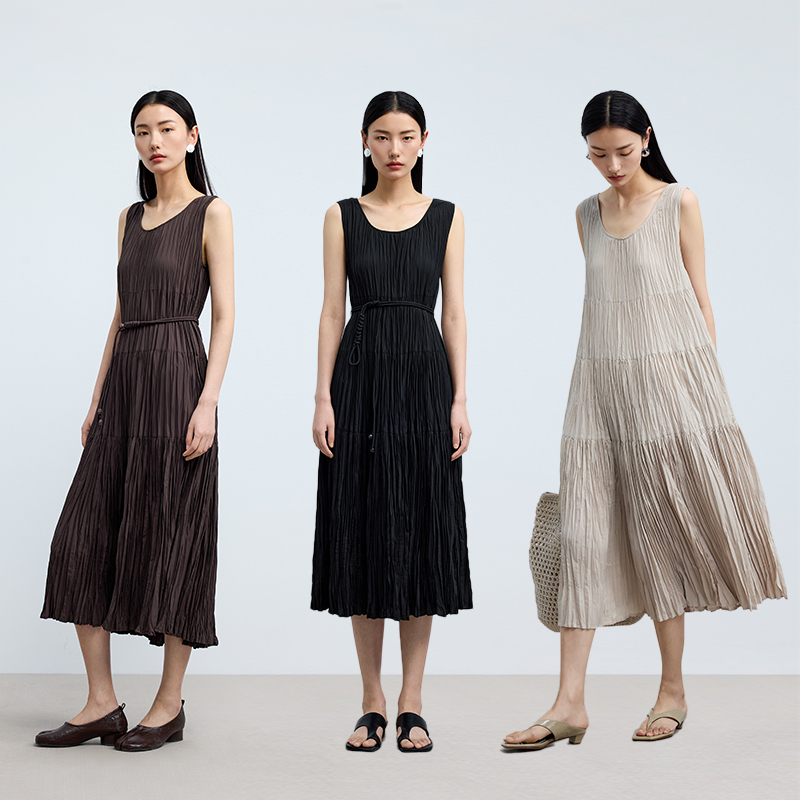 水云间女装低圆领优雅编绳收腰轻薄显瘦背心连衣裙2025夏季新款