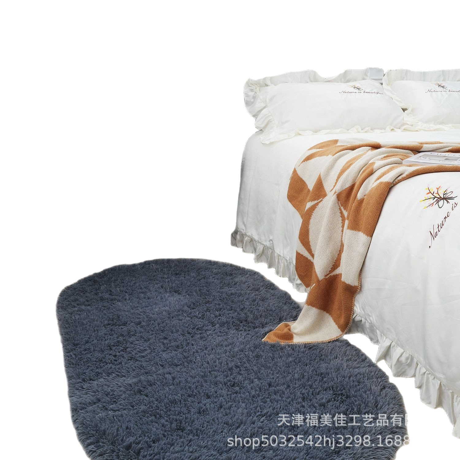 TEMU椭圆丝毛地毯卧室床边毯扎染客厅装饰地垫长毛脚垫