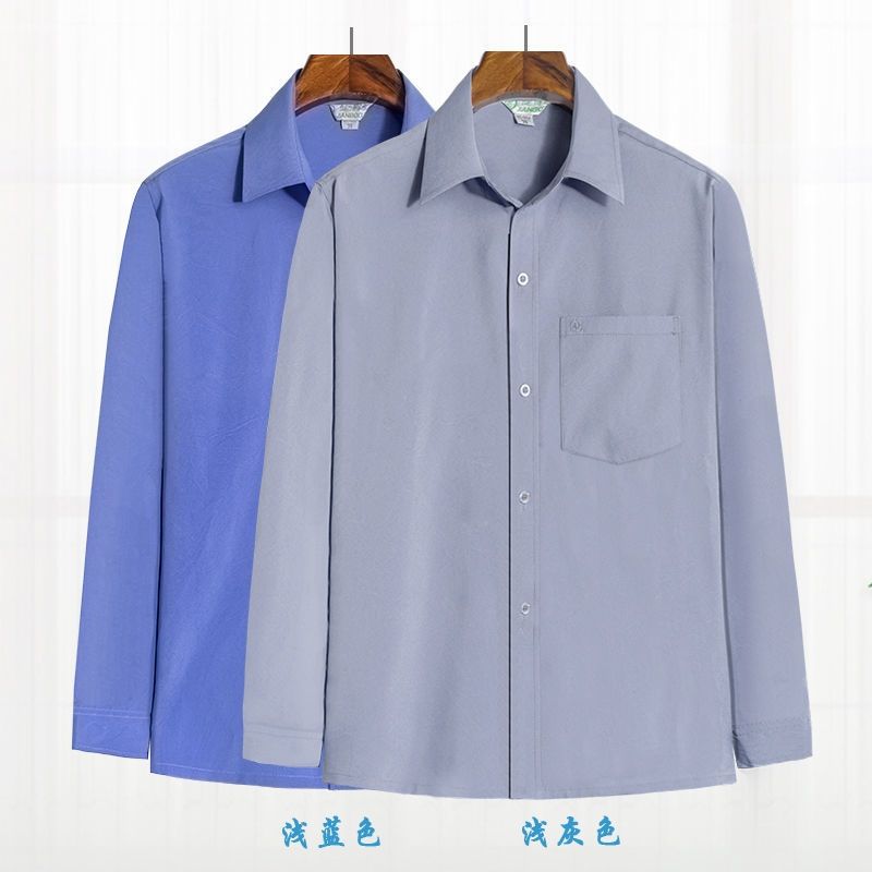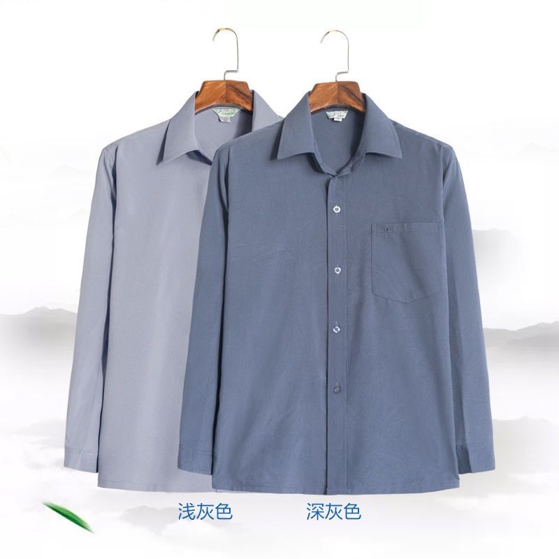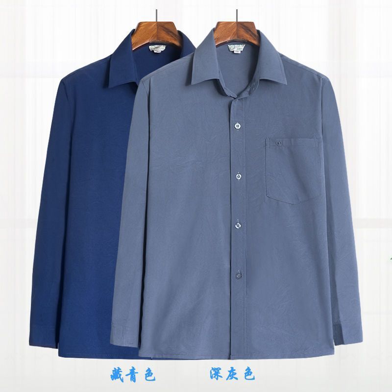 中老年男士长袖衬衫休闲薄款中老年人内衬衣爸爸装纯色衣服