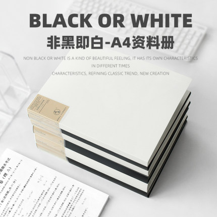 尼家非黑即白a4文件夹透明插页60页资料册学生多层试卷收纳袋乐谱