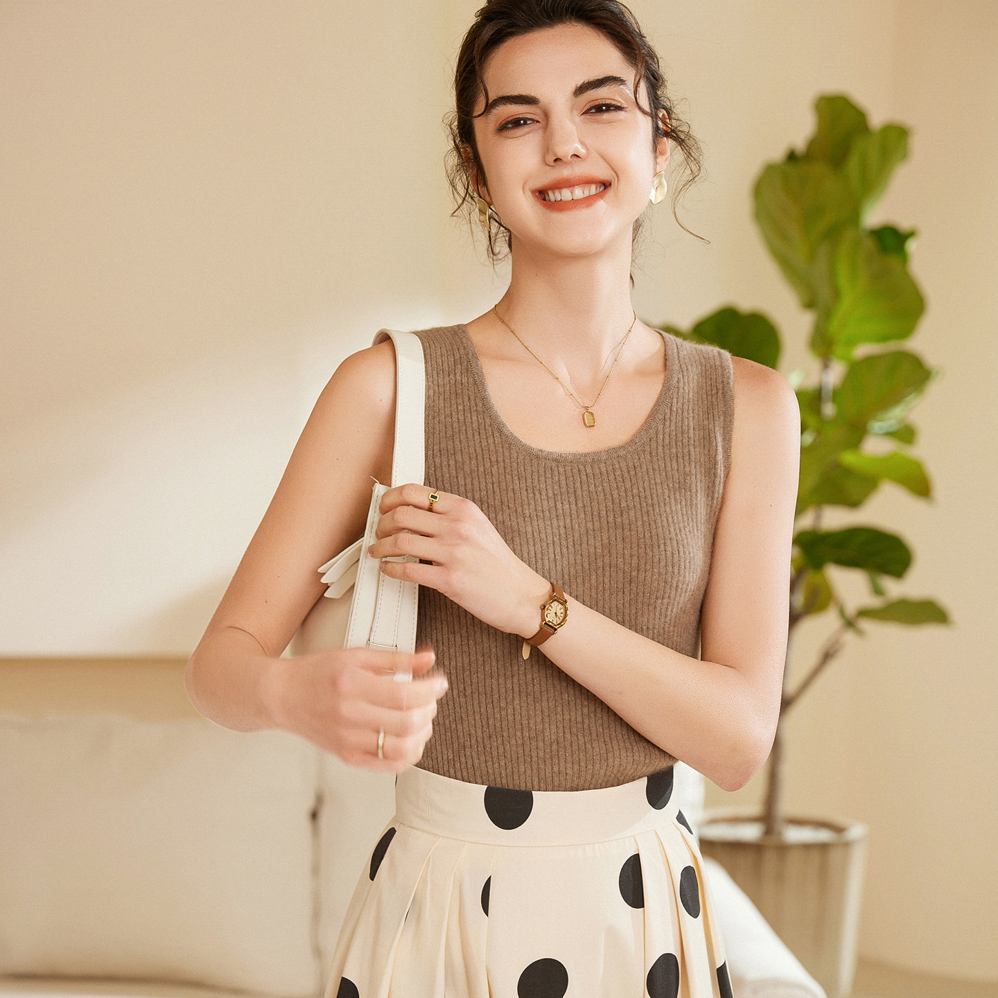 2025秋冬新款100%羊绒背心女圆领无袖针织打底衫宽松内搭保暖上衣