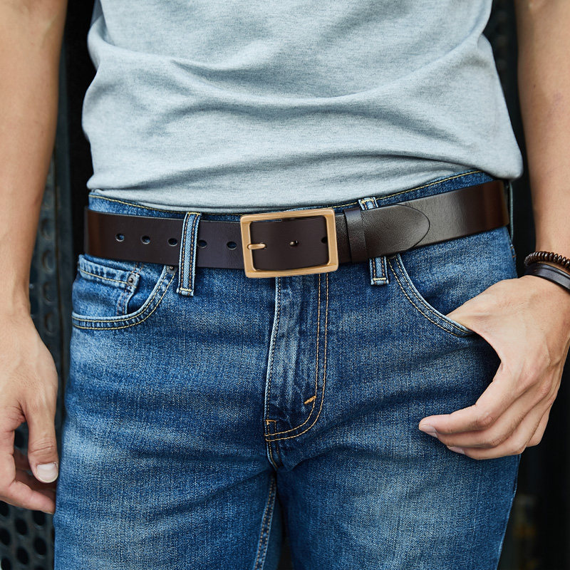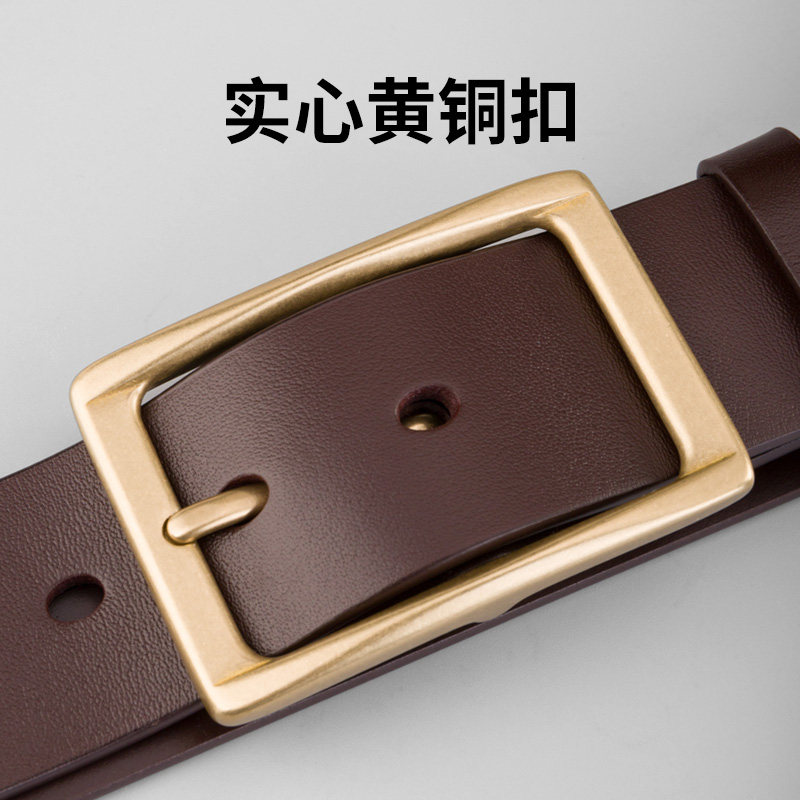 牛当家男士皮带针扣真皮铜扣腰带男头层牛皮复古休闲青年牛仔裤带