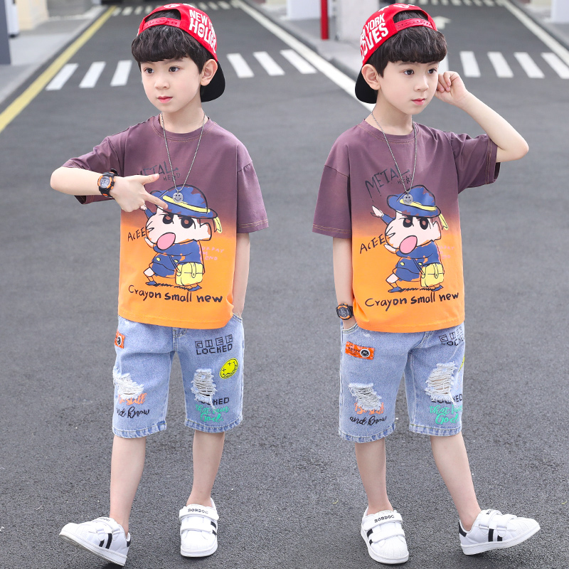 儿童装男童夏装套装2023年新款夏季帅气短袖中大童薄款运动衣服潮