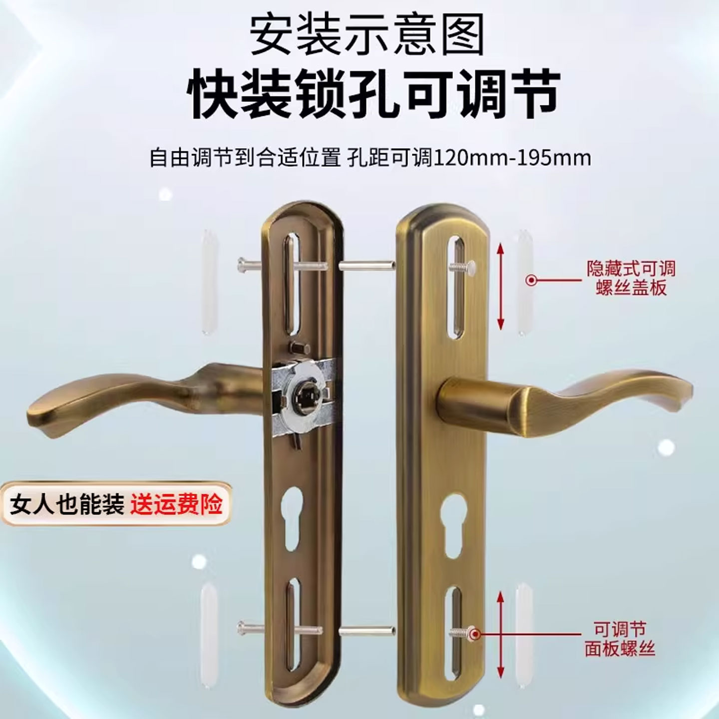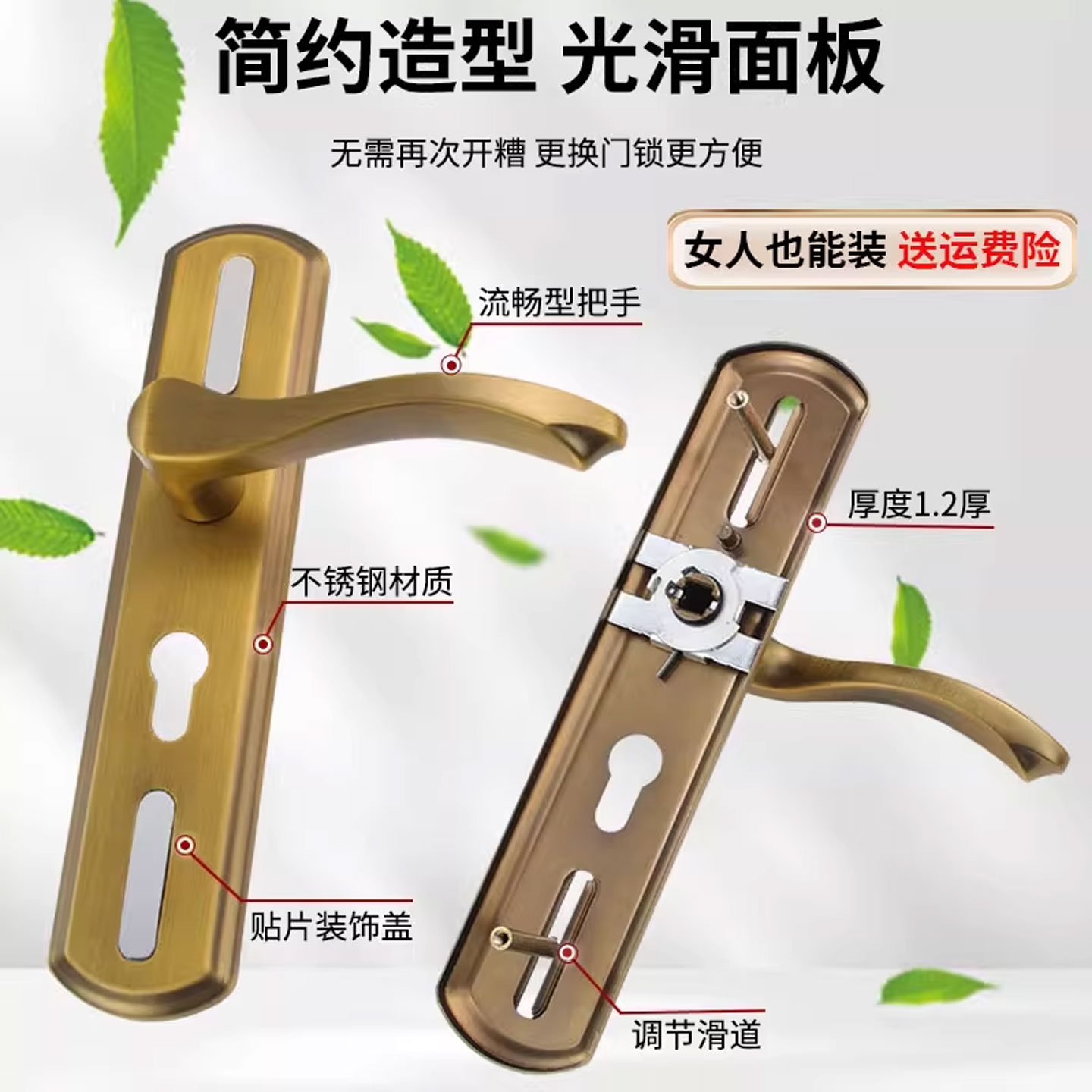 房门锁家用通用型卧室内门欧式锁具三件套静音红木门旧门换锁可调