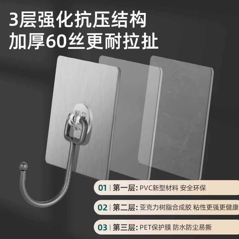 免打孔挂钩强力粘胶无痕承重墙上壁挂厨房吸盘钩架子粘贴粘钩承重