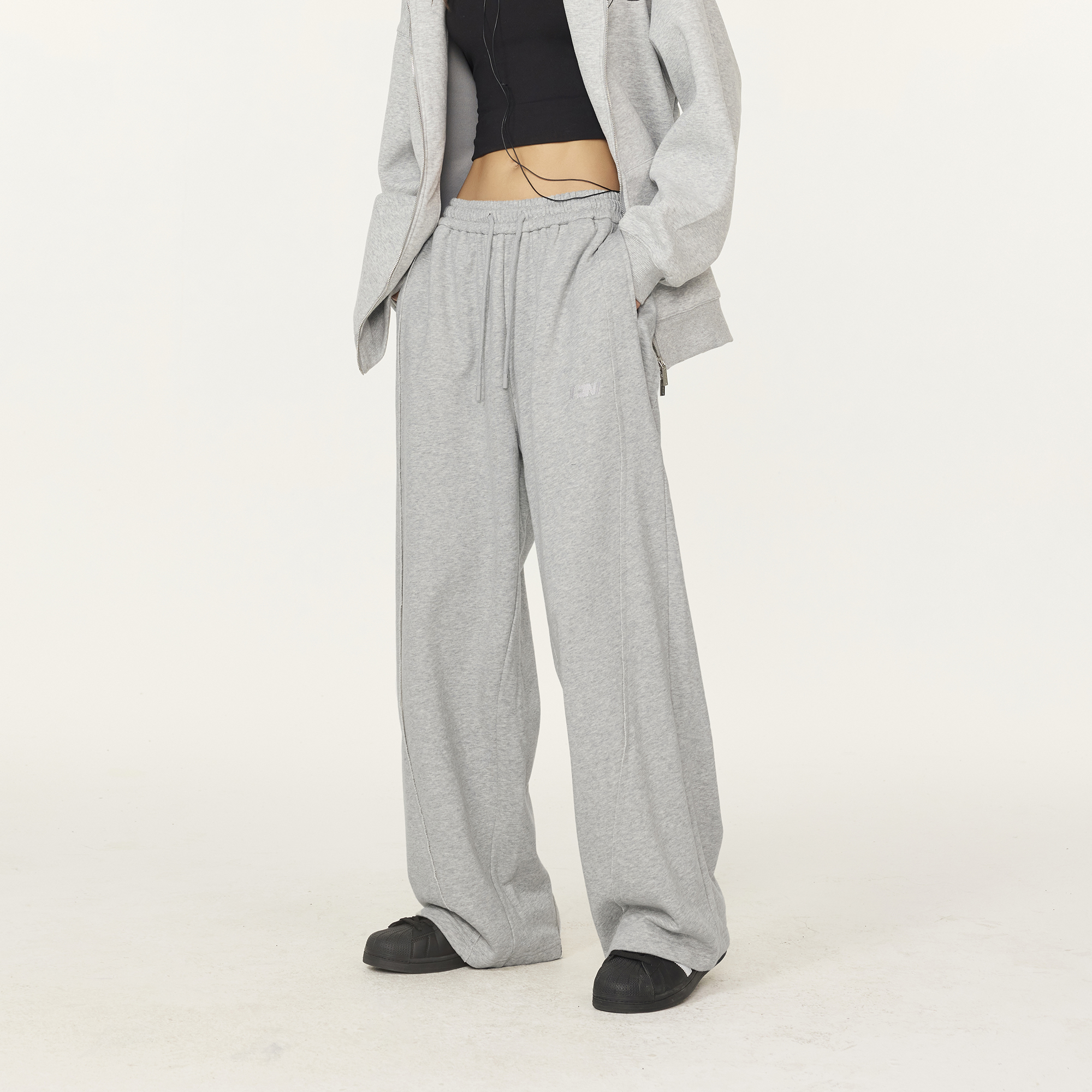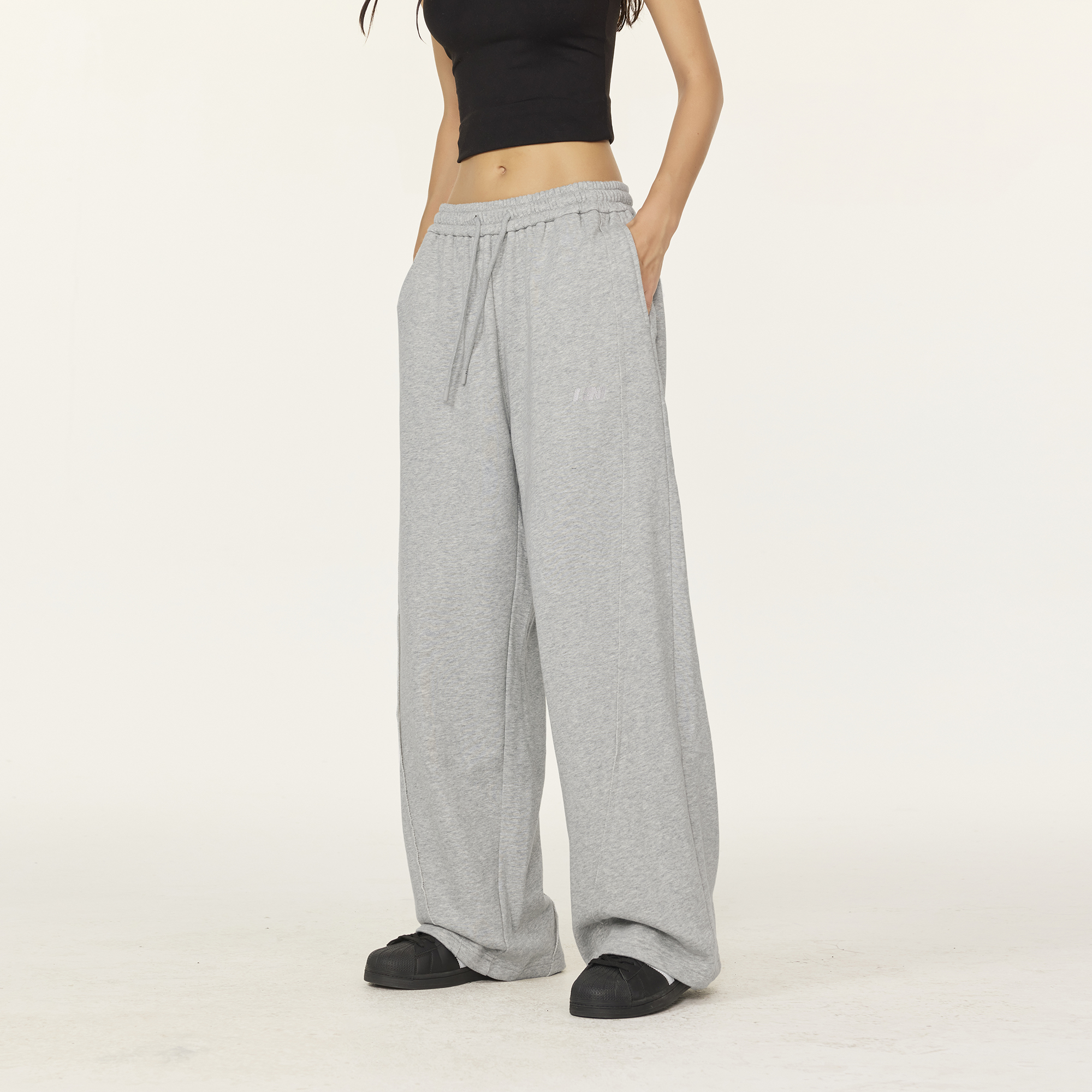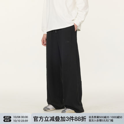 FORNINES刺绣重磅毛圈黑色卫裤男生宽松直筒休闲裤子春秋百搭长裤