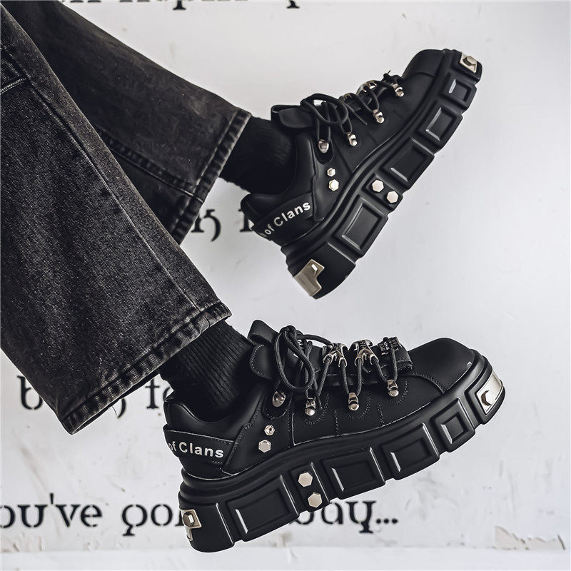 小众男鞋春秋爆款运动休闲板鞋厚底增高朋克风百搭潮牌面包鞋春季