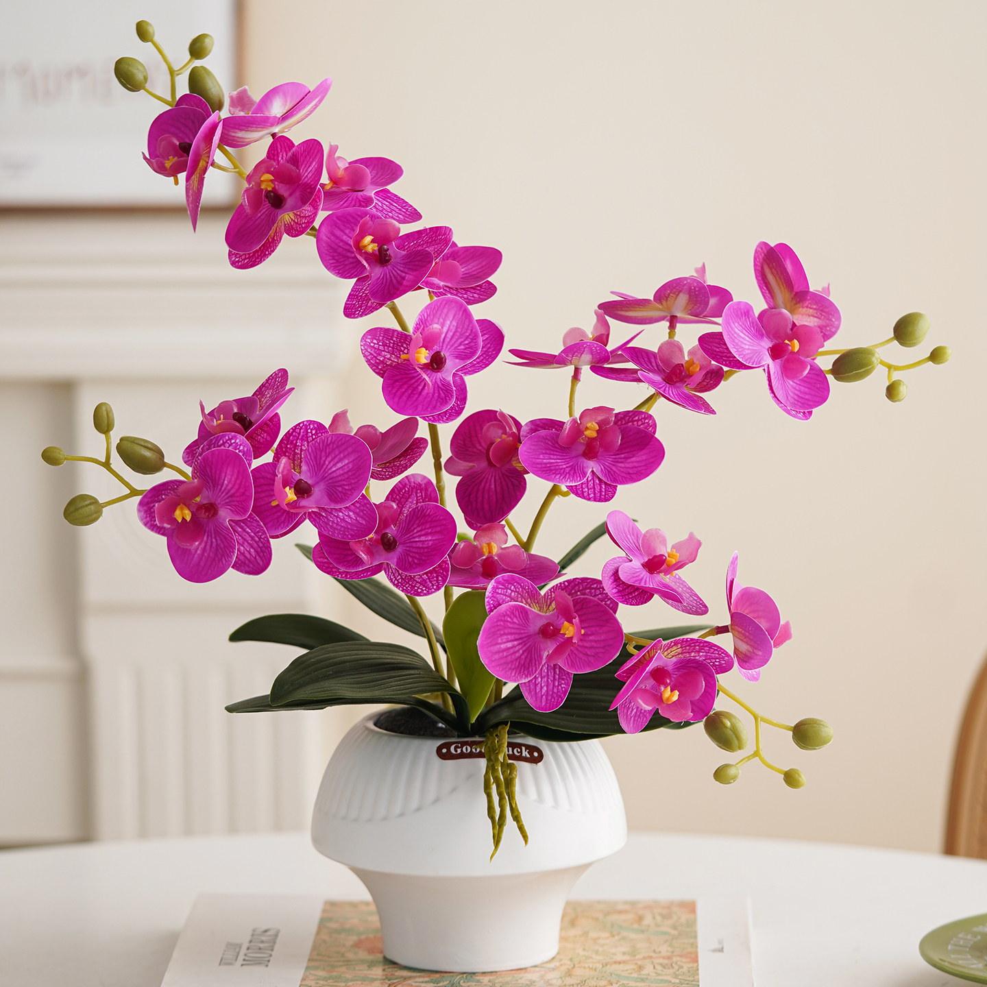 润野高端现代简约装饰花摆件蝴蝶兰轻奢假花客厅仿真家居桌面花艺