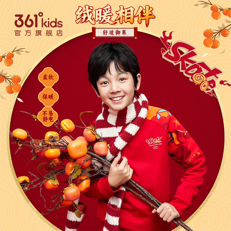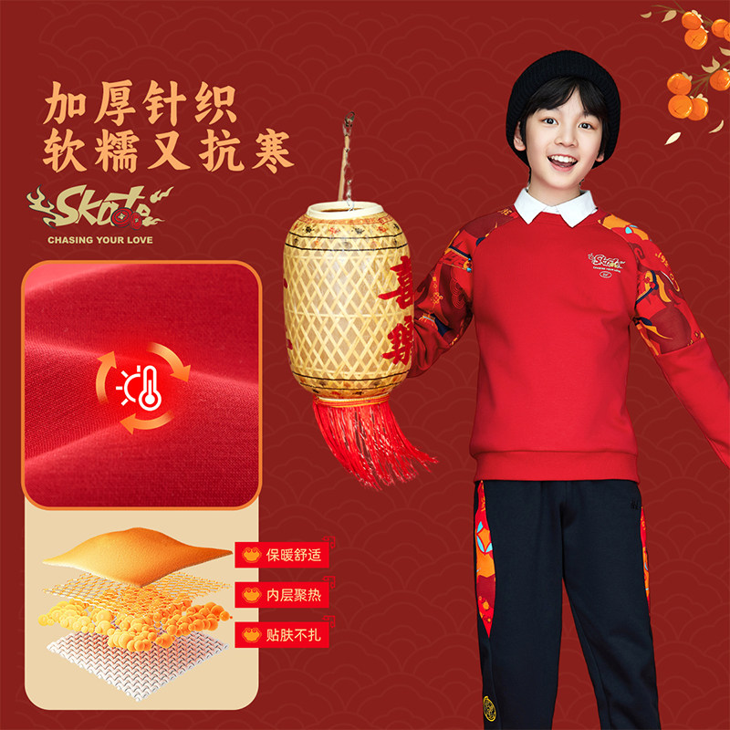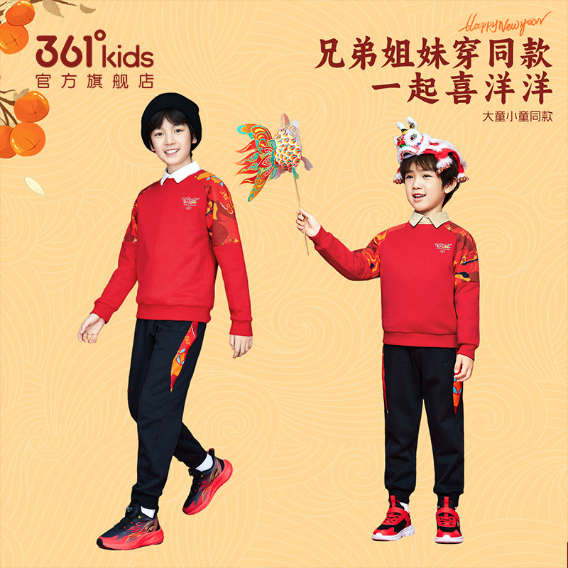 新年国潮361童装男童针织加绒红色卫衣儿童加厚裤子2026春大小童