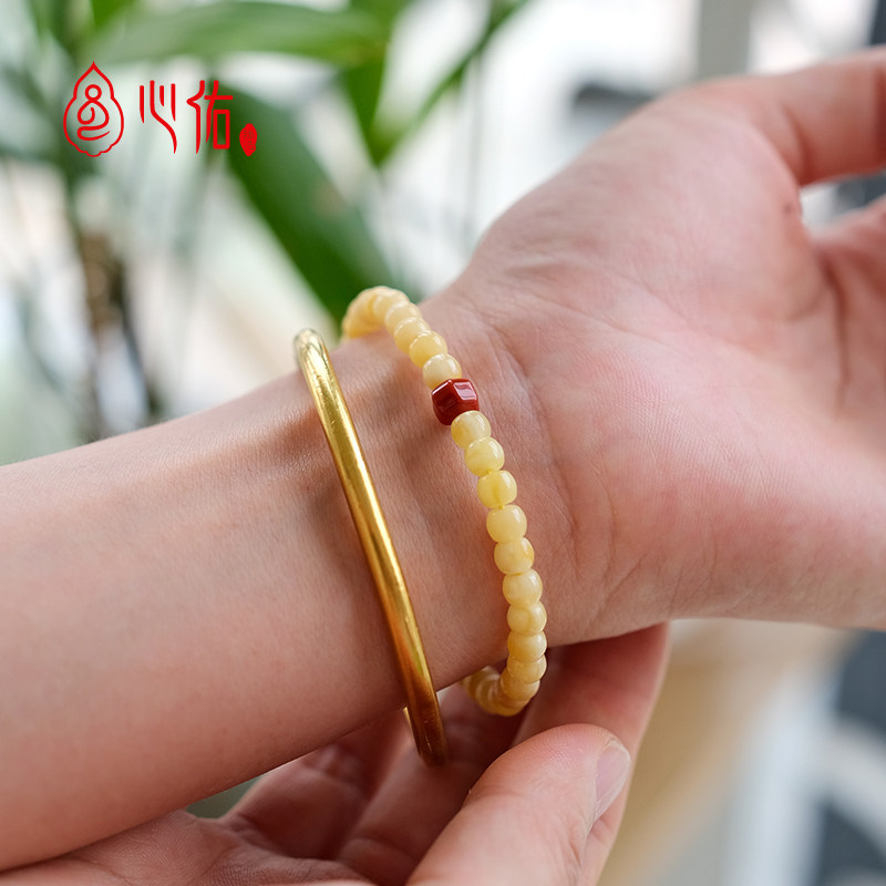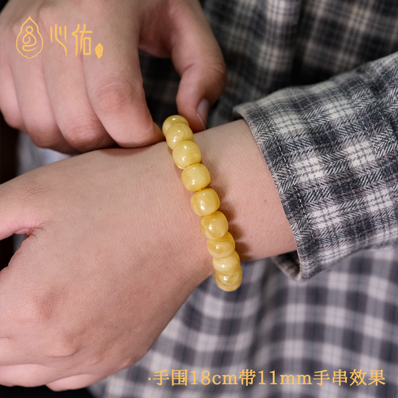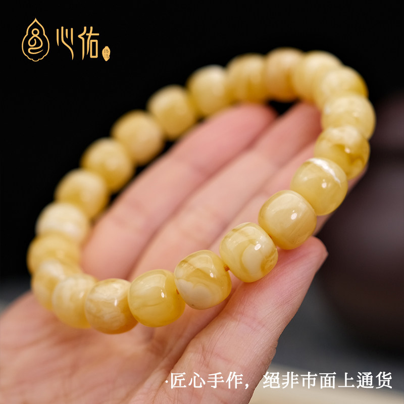 微瑕天然蜜蜡手串正品旗舰店 俄料鸡油黄白花老型琥珀手链男女款