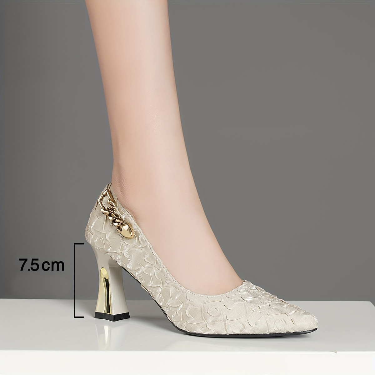 时尚国风单鞋女粗跟2025新款细跟气质女鞋尖头职业高跟鞋舒适百搭