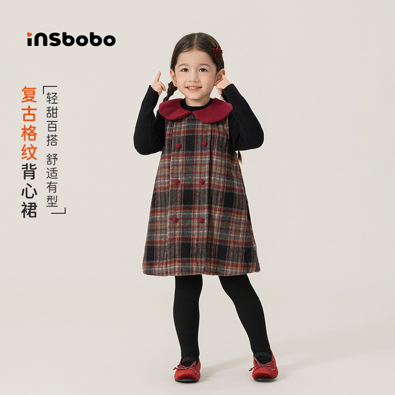 INSbobo女童连衣裙2025秋冬新款周岁女宝礼服冬季加绒儿童裙子潮