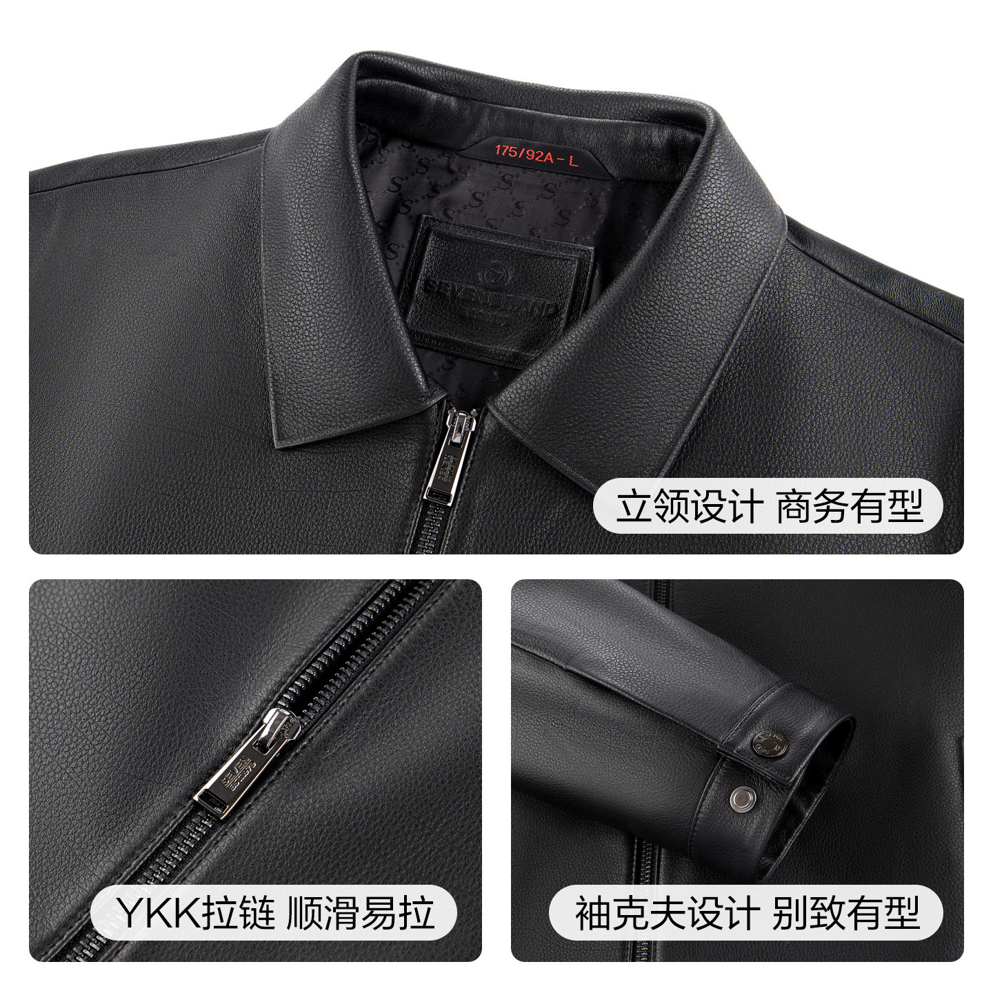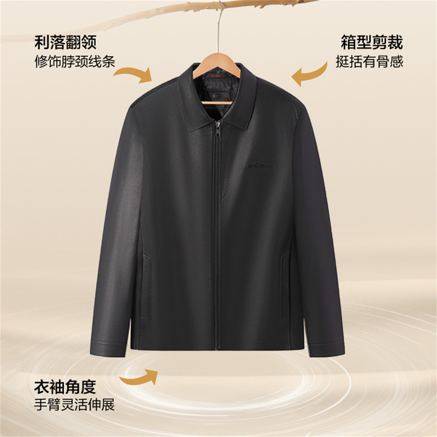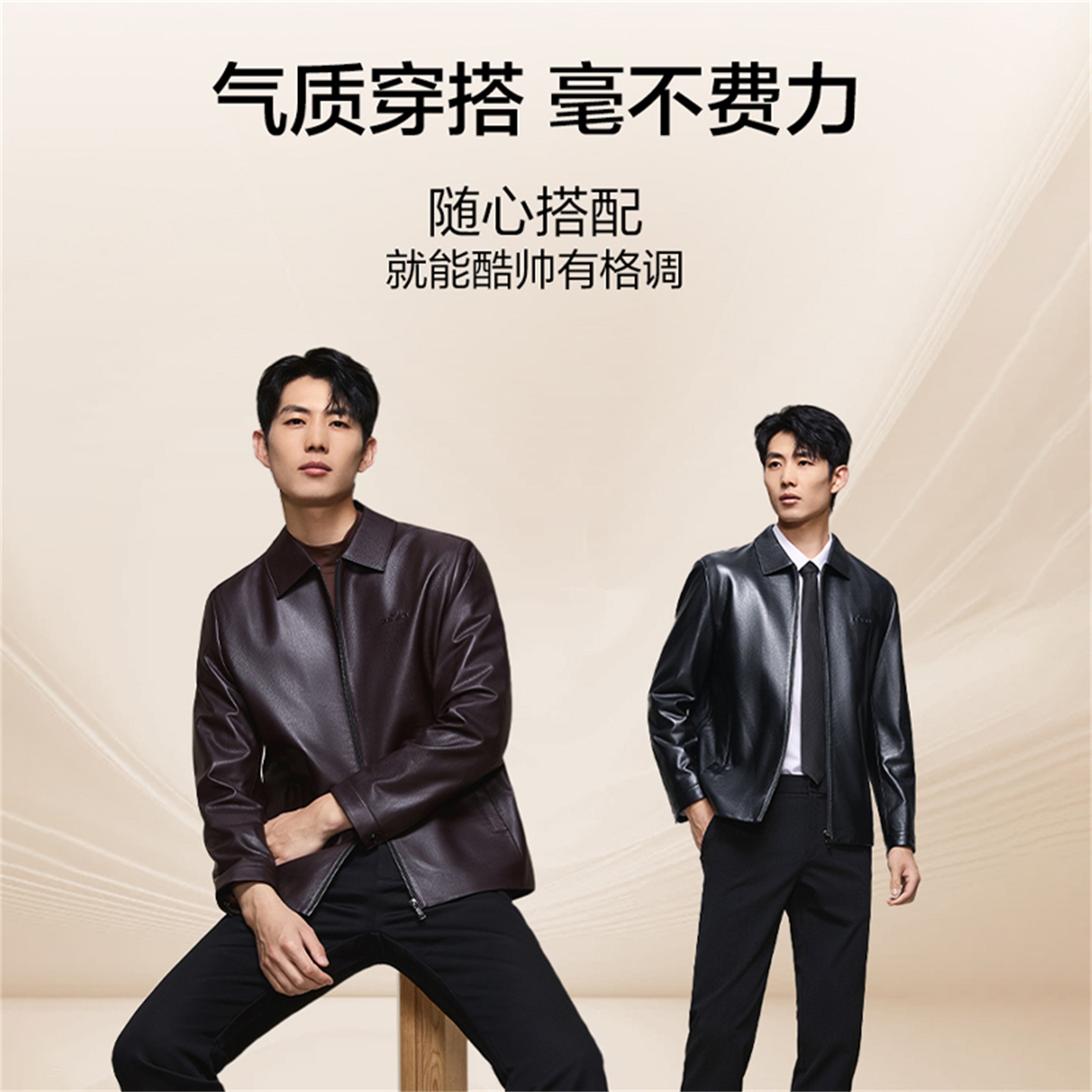 【绵羊皮】柒牌真皮皮衣男2025春季新款商务通勤防风保暖翻领外套