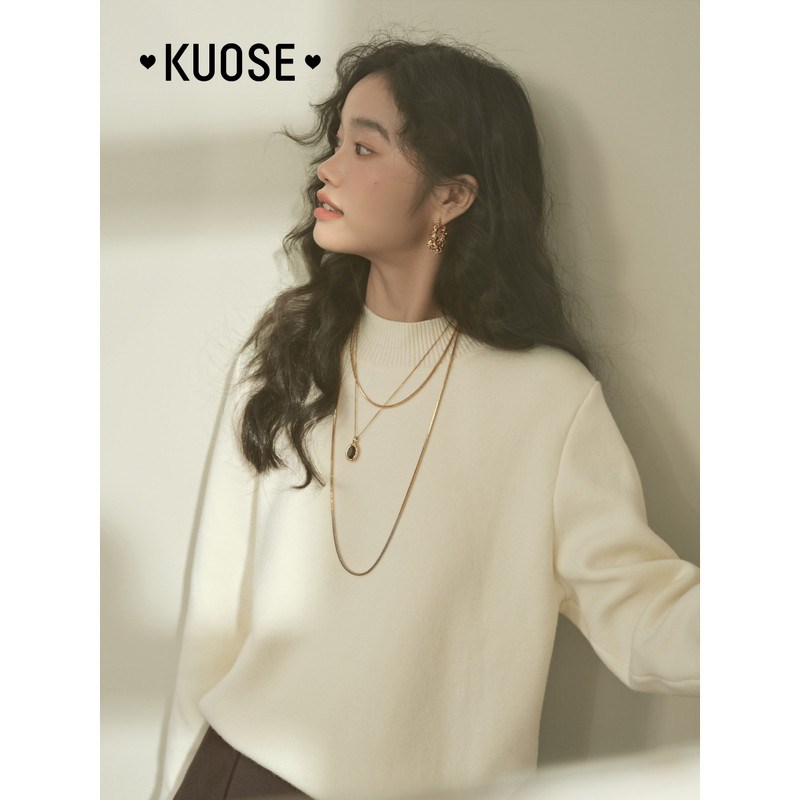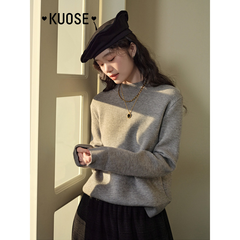阔色灰色半高领长款针织毛衣女2024秋冬新款加绒内搭修身打底衫