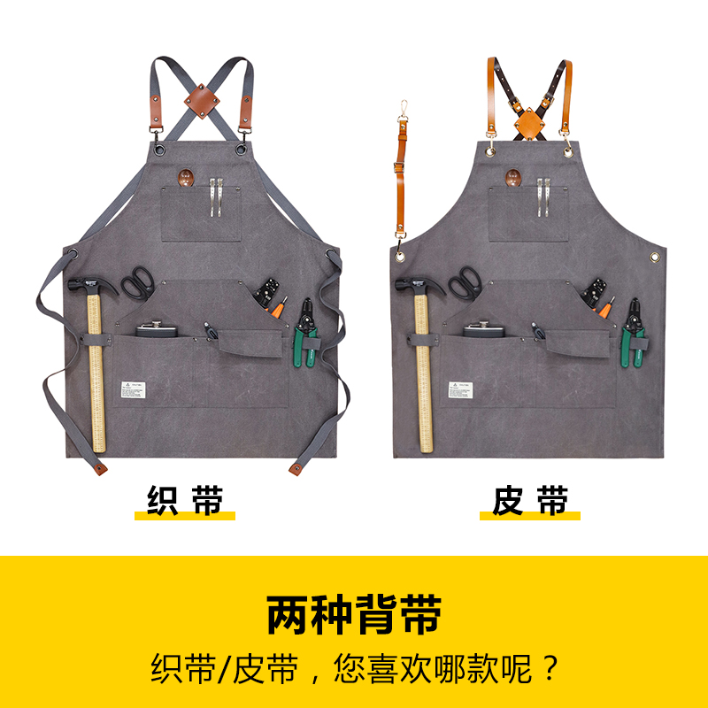日式工装围裙定制印字园艺女咖啡师机修工专用厚帆布防水工作服男