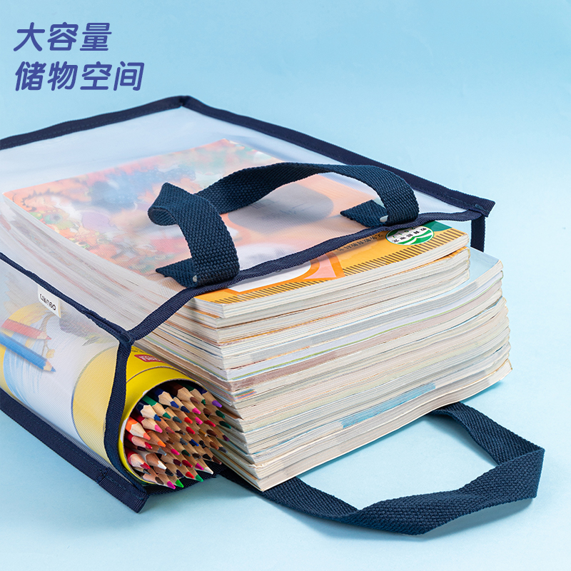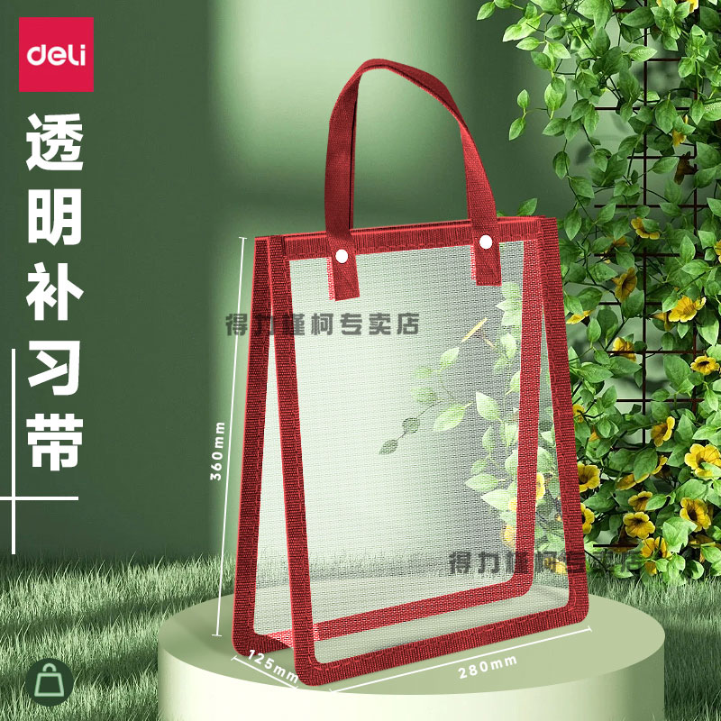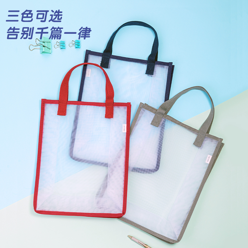 得力文件袋透明手提袋加厚网纱按扣资料袋大容量学生上课补习袋考试专用袋子补课包拎书袋a4档案袋文具袋子